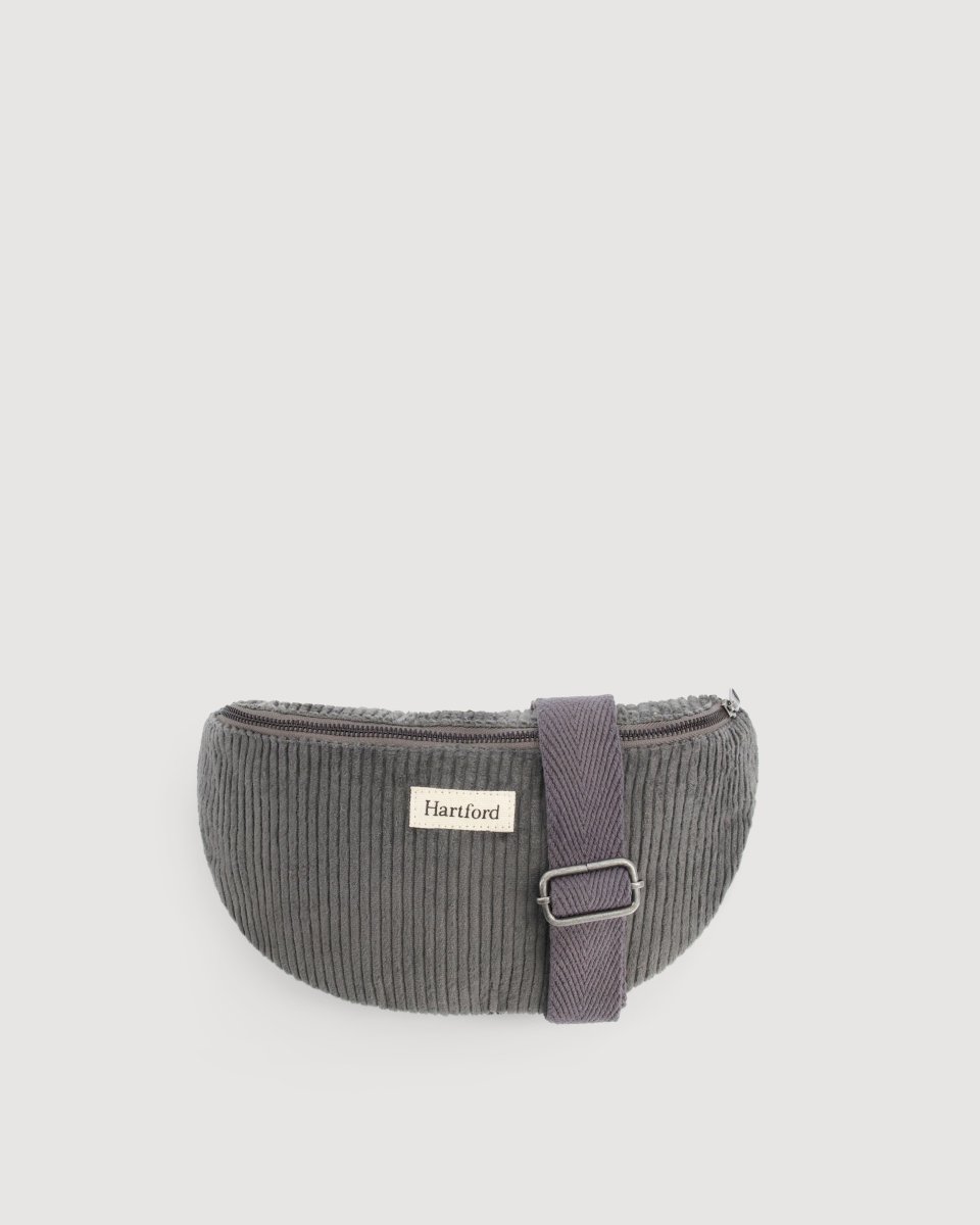 Sac banane en velours côtelé avec étiquette écru Hartford sur le devant. Fermeture par glissière et taille ajustable grâce à une patte de serrage sur la anse.