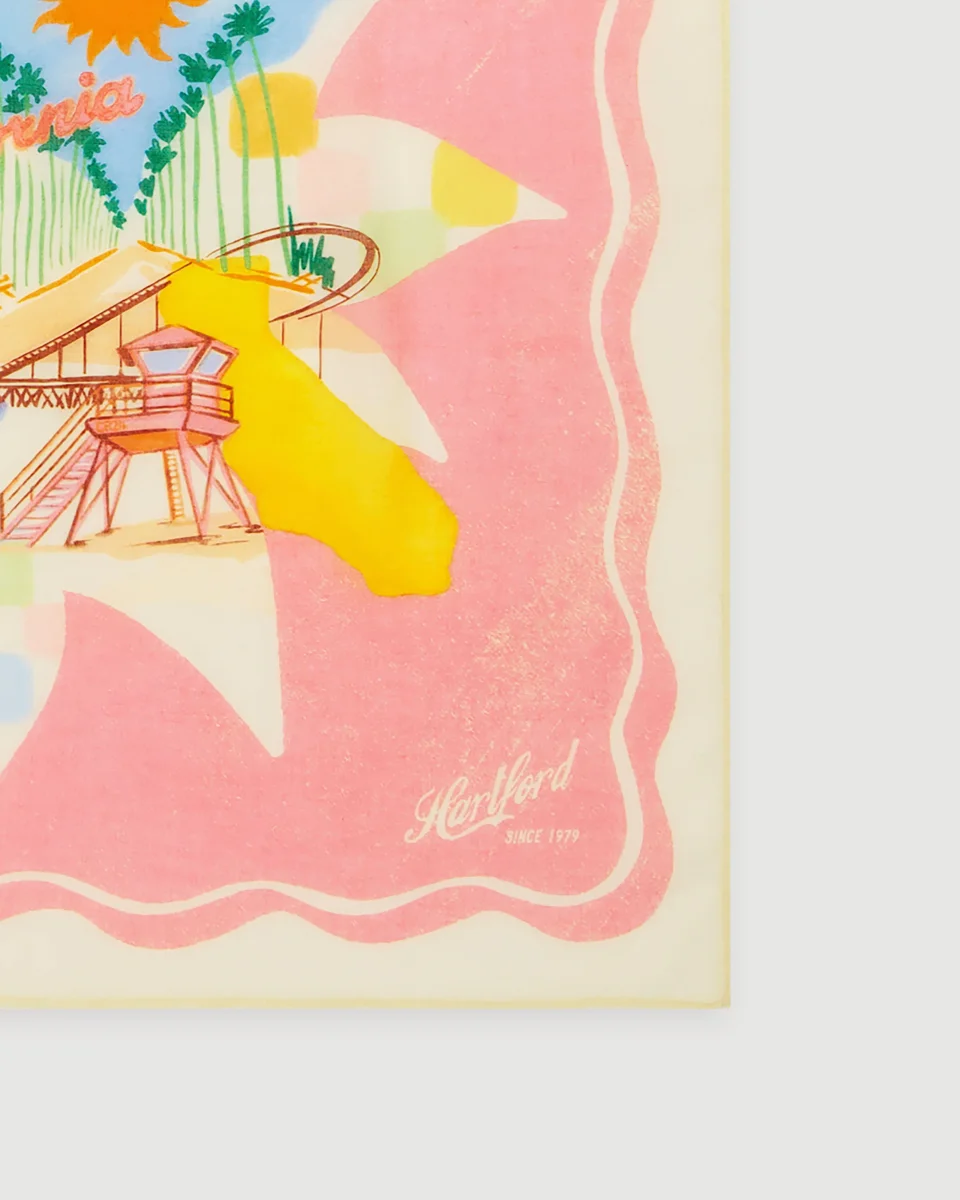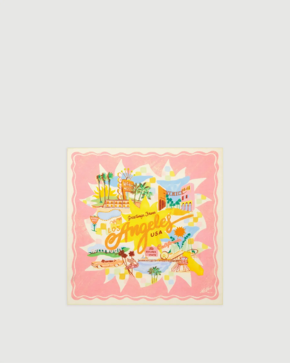 Petit Bandana femme en voile de coton imprimé exclusif « Souvenir de Los Angeles ». Dimensions environ 75 x 75cm.