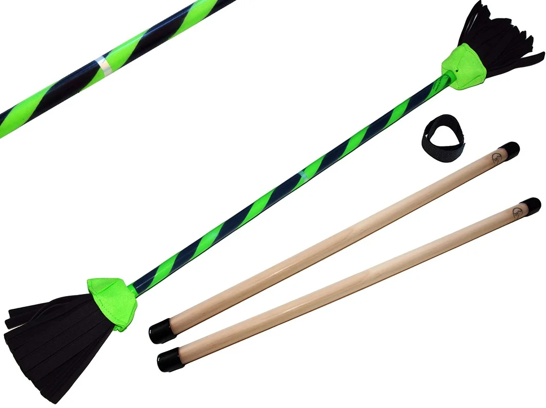 Découvrez le Bâton fleur FNG Flash grip avec baguettes – L’ensemble professionnel pour bâton fleur. Fabriqué avec une décoration fluorescente UV. Centre solide en fibre de verre incassable. Vendu avec des baguettes en bois recouvertes de silicone ultra adhérent de 2mm. Extrémités en daim épais de qualité. Idéal pour débutants et professionnels. 65.5cm de longueur (inclus franges) et 187g de poids. Baguettes mesurant 40.5cm de longueur, 61g chacune, et 14mm de diamètre.