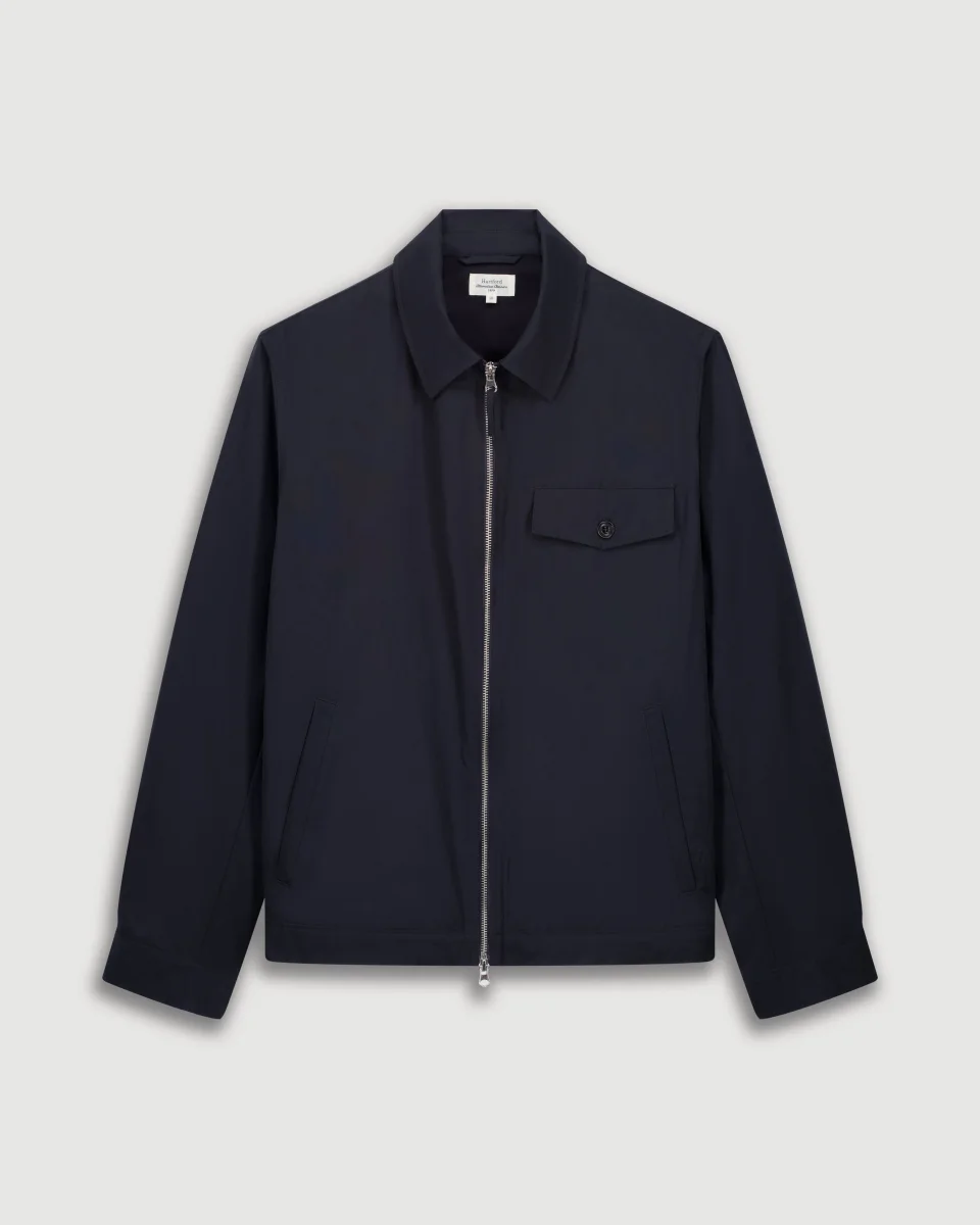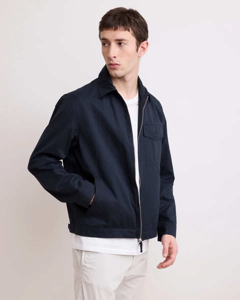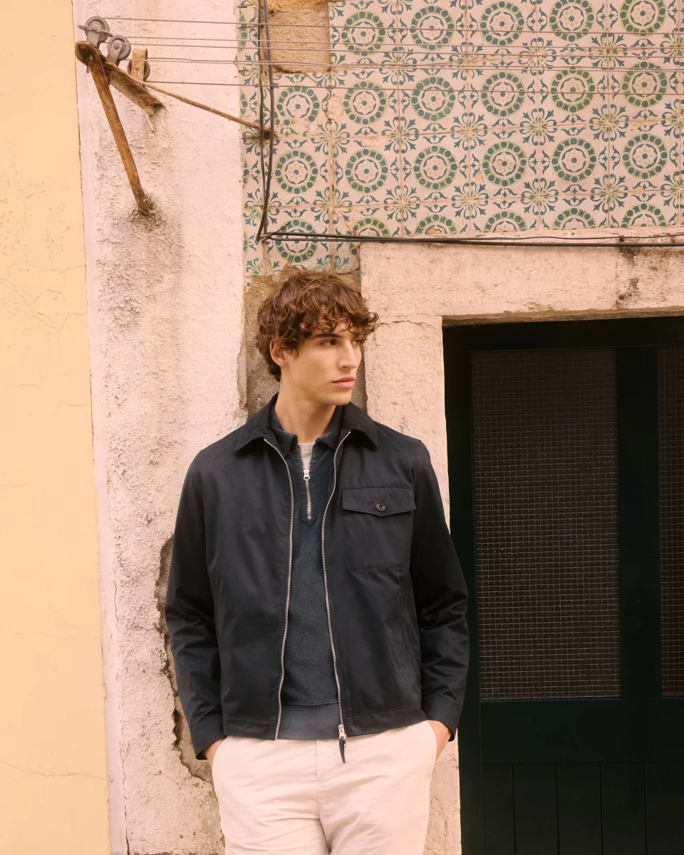 Blouson court déperlant à fermeture glissière double curseur. Deux poches passepoilées latérales et une poche plaquée à la poitrine. Pattes de serrage à la taille et aux poignets.