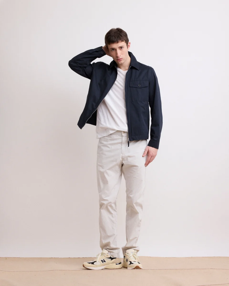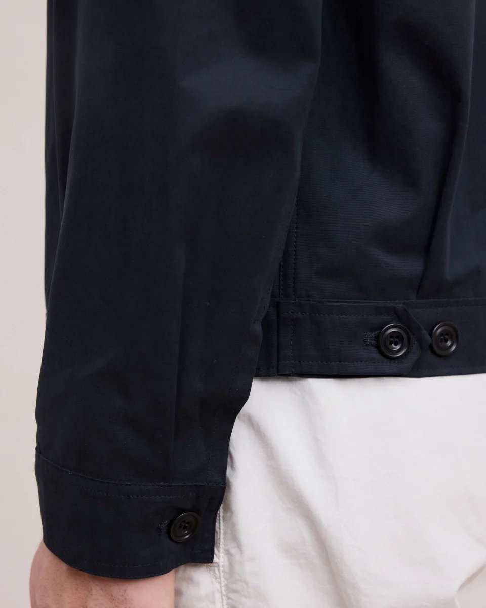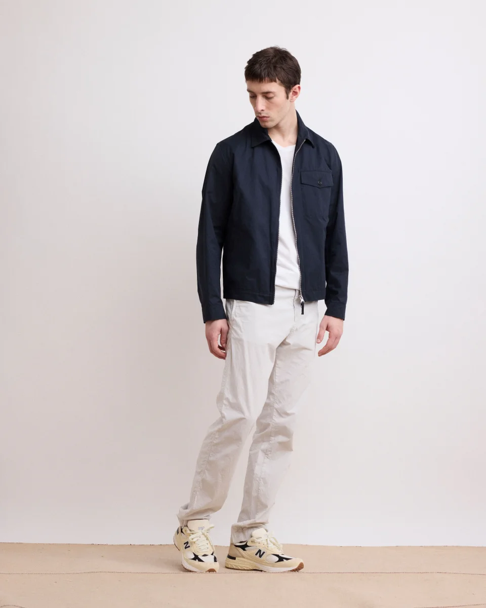 Blouson court déperlant à fermeture glissière double curseur. Deux poches passepoilées latérales et une poche plaquée à la poitrine. Pattes de serrage à la taille et aux poignets.