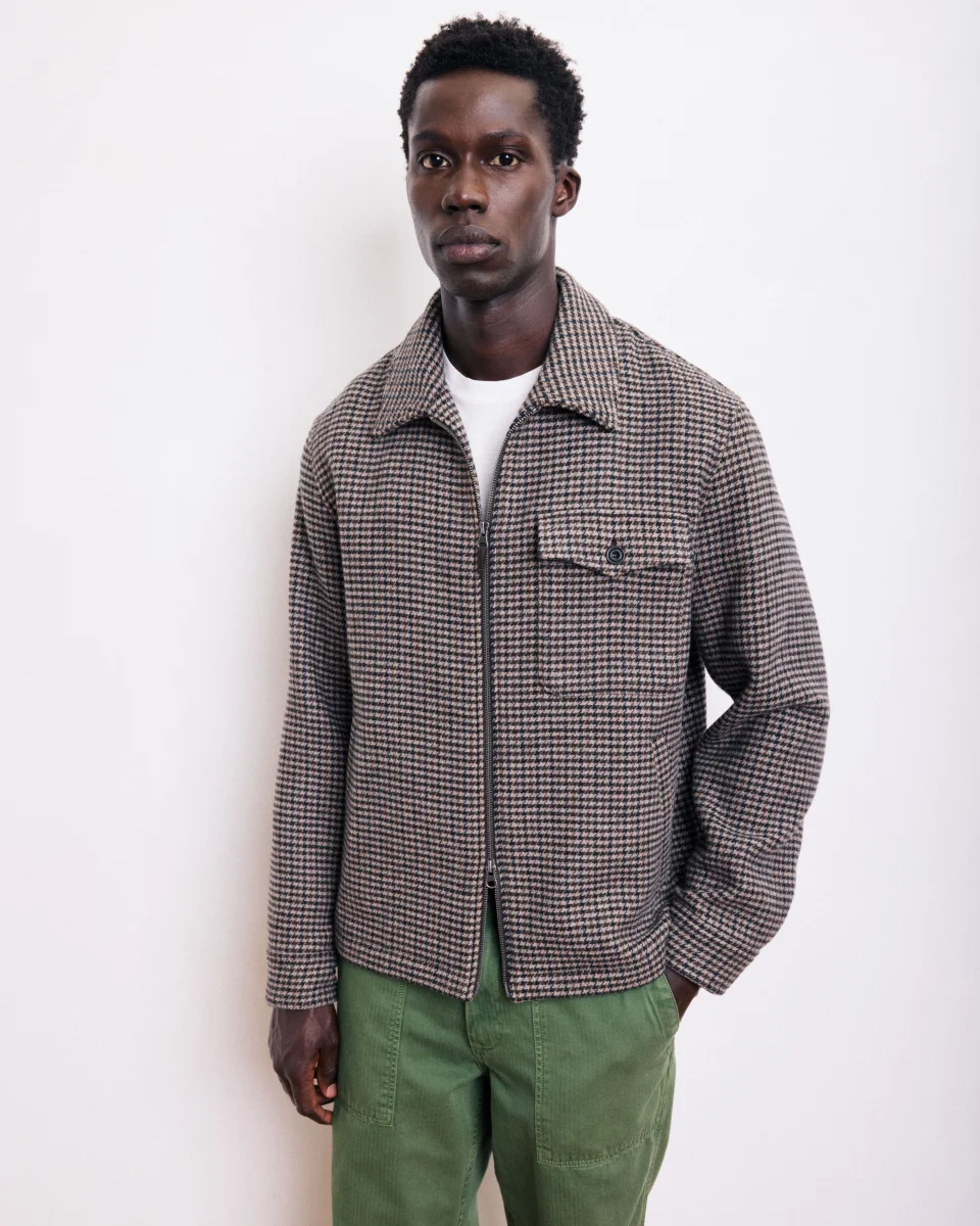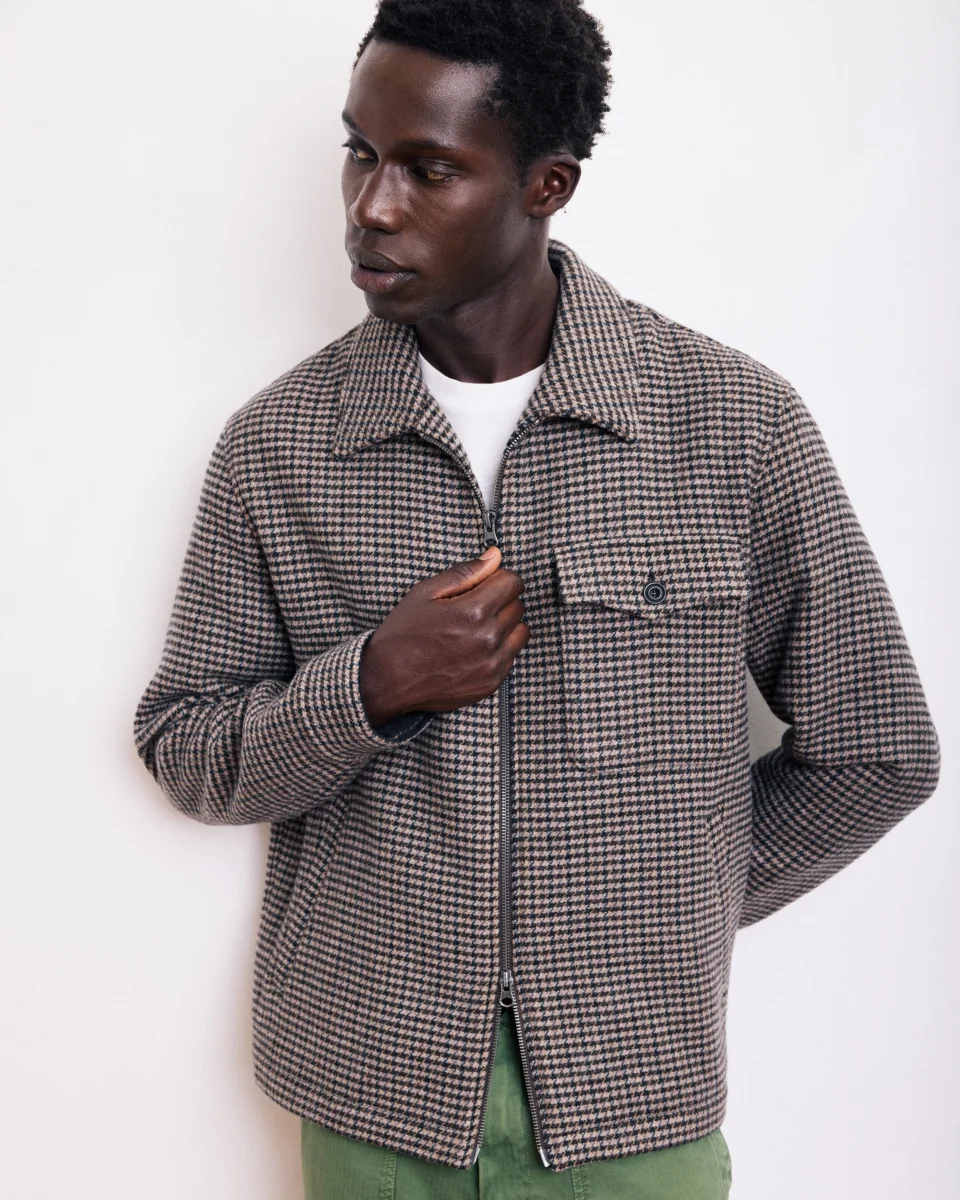 Blouson Homme en Laine Pied de poule Marron Dandy