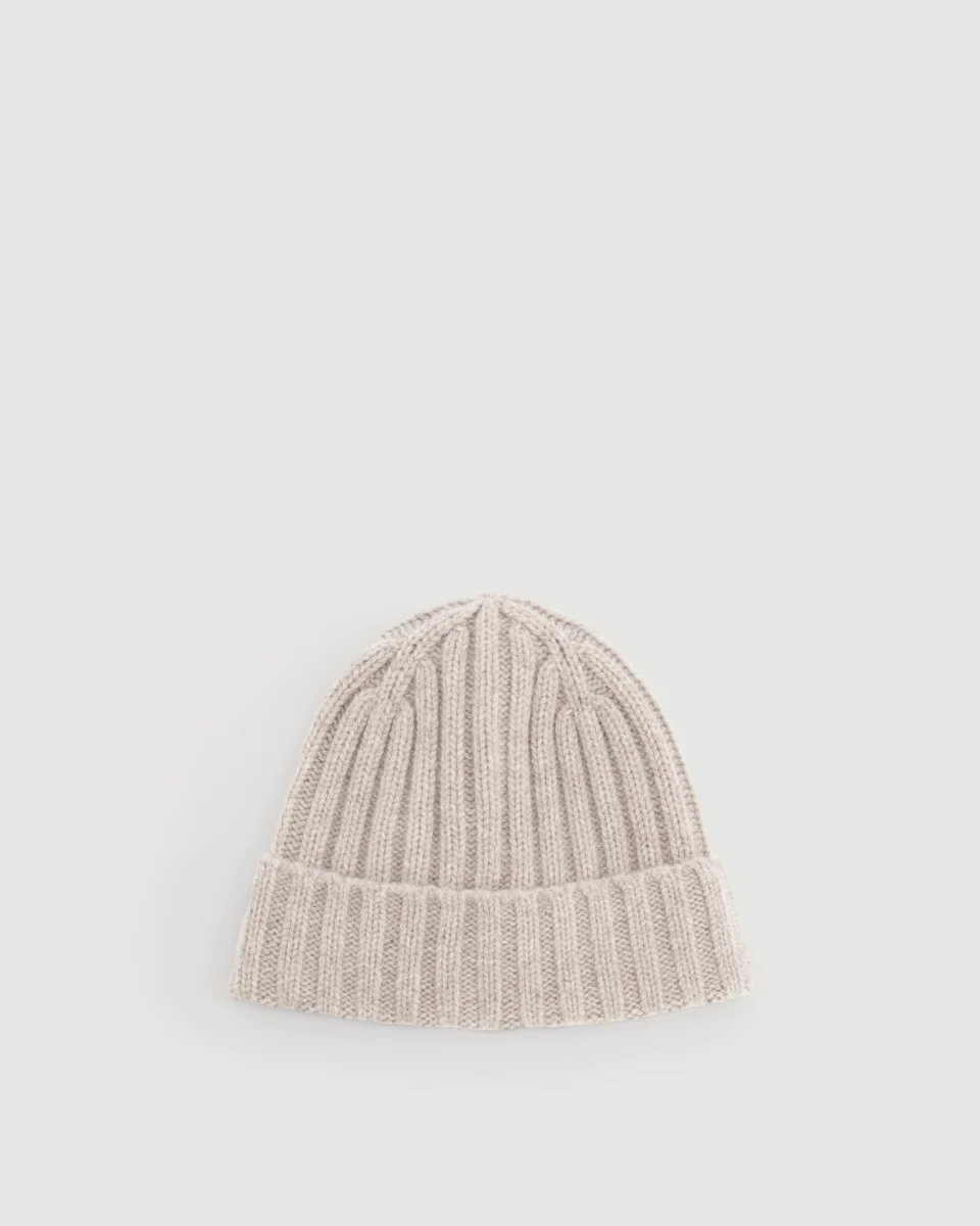 Bonnet garçon côtelé en laine et cachemire.