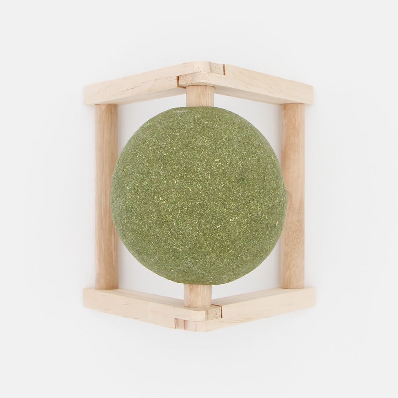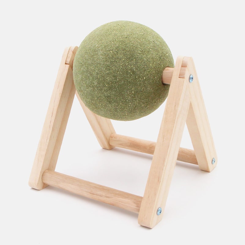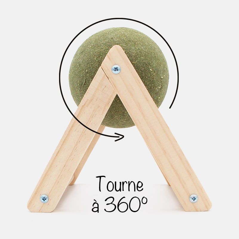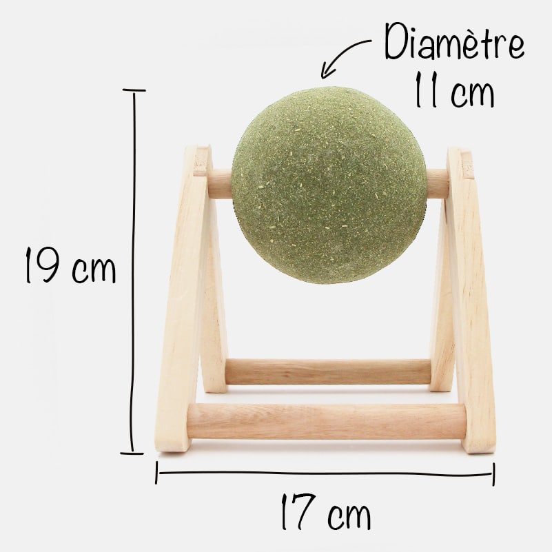Cette boule d’herbe aux chats cataire, sur socle en bois, a été sélectionnée par des vétérinaires car ses bénéfices participeront au bien-être de votre chat.