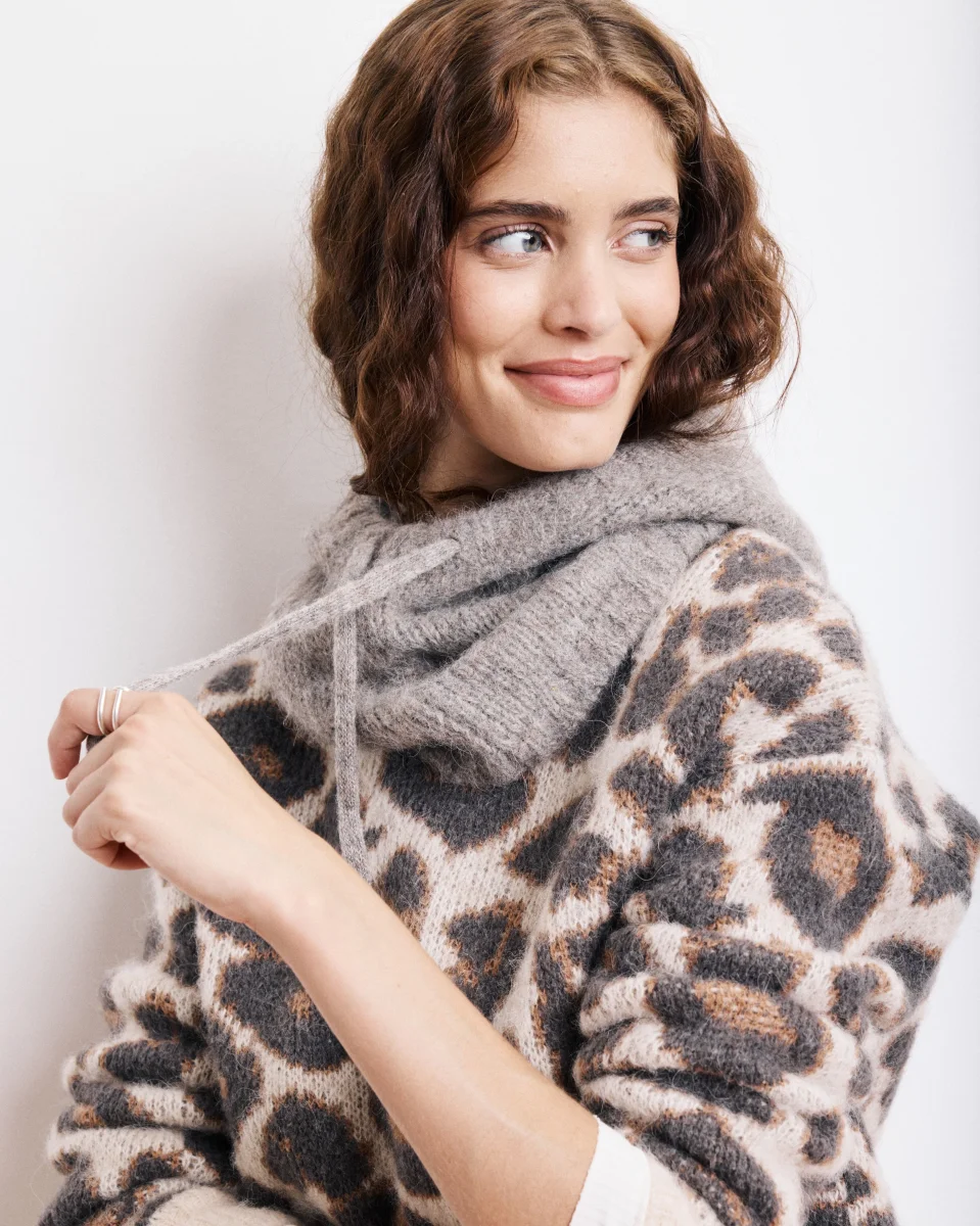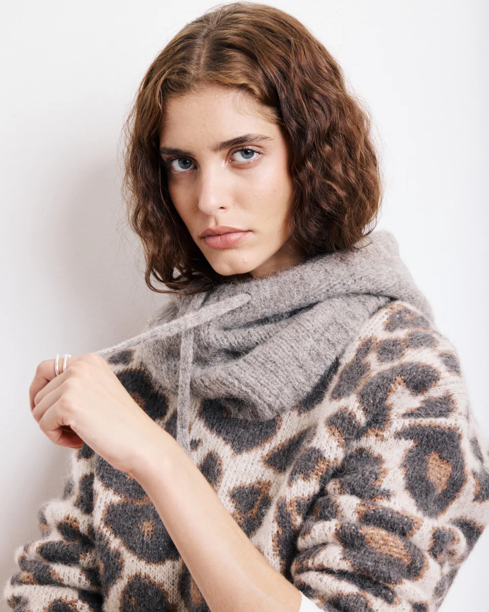 Cagoule Femme en Alpaga & Lurex Taupe Merel
