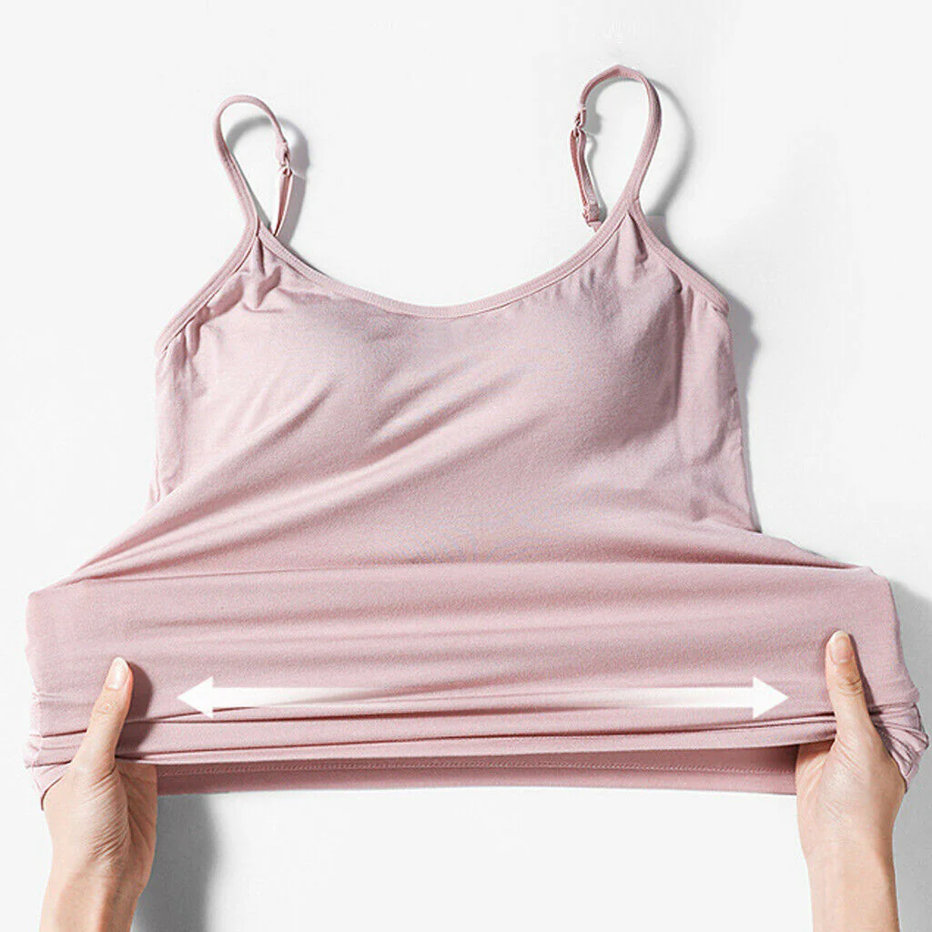 Cette conception fait de notre camisole une pièce parfaite à superposer sous n’importe quel vêtement, tout en étant également un débardeur solide avec un soutien-gorge intégré.