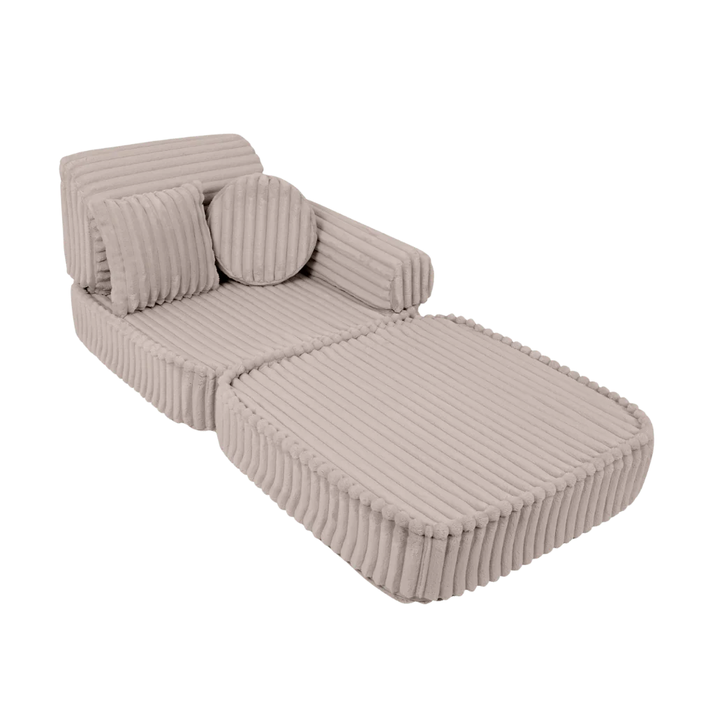 Grâce à son format malin et à sa structure modulable, ce canapé s’adapte à toutes les pièces, des petits espaces cosy aux chambres plus spacieuses, pour créer un coin lecture, jeu ou sieste rien qu’à votre enfant.