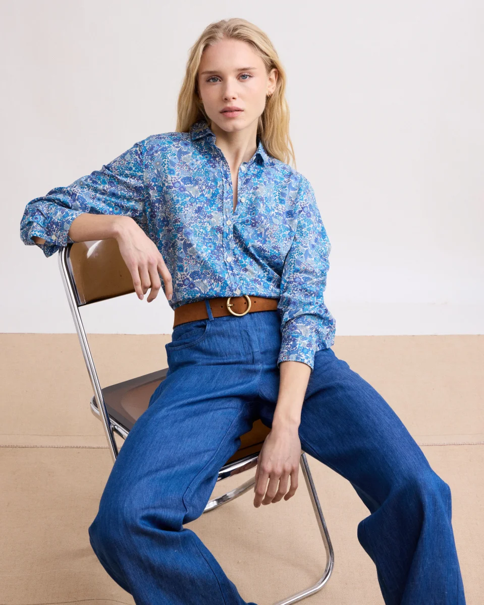 Chemise Femme en Coton Imprimé Liberty Bleu Corazon