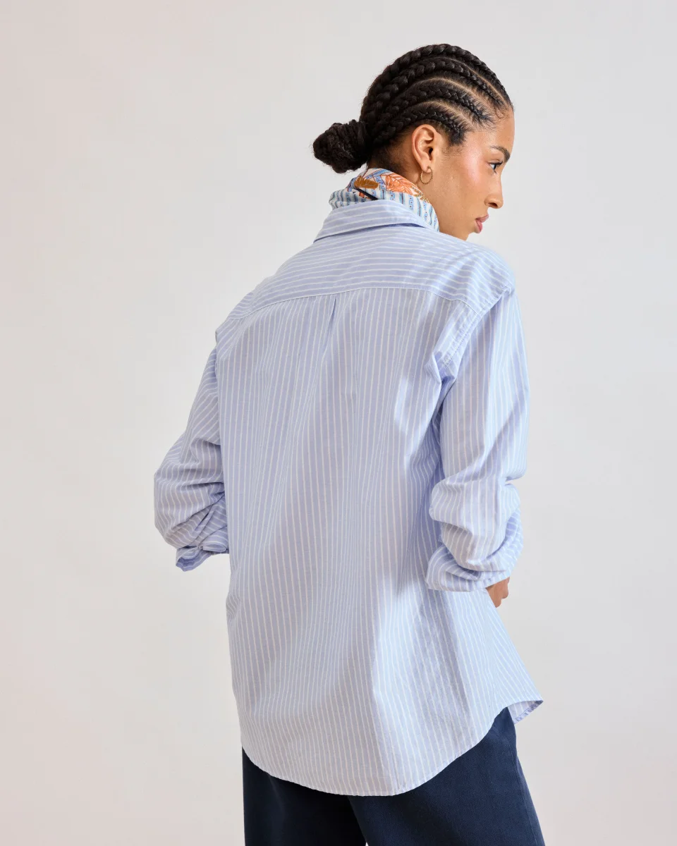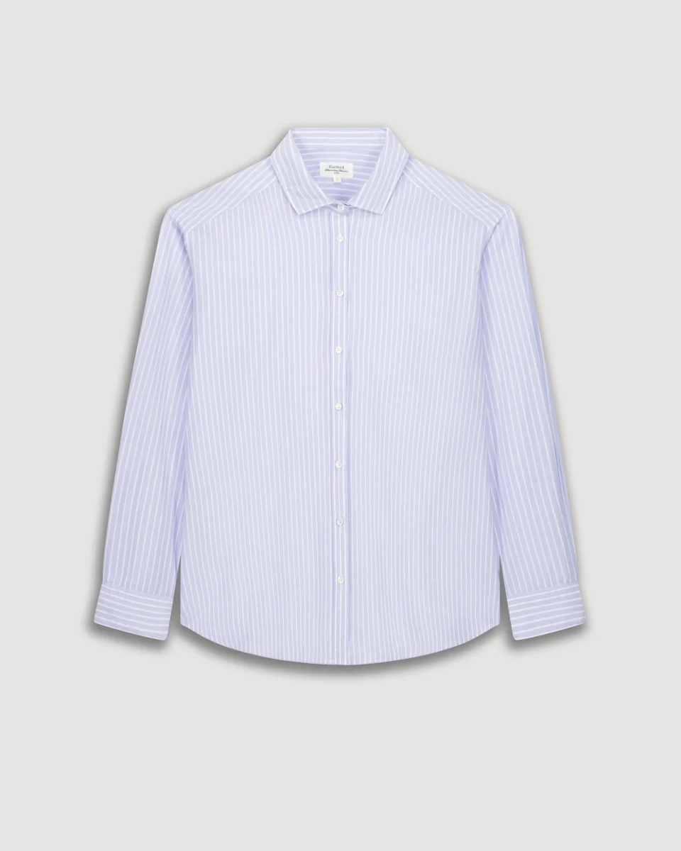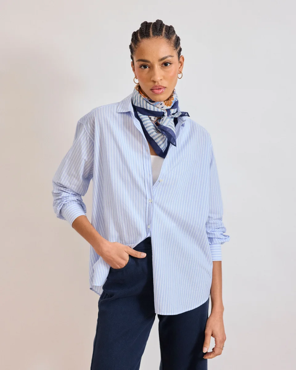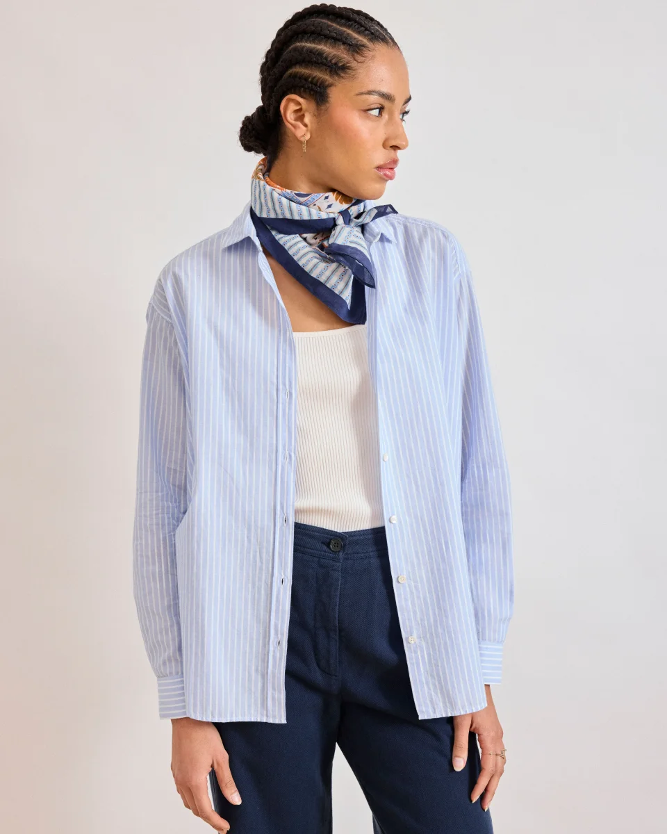 Chemise Femme en Popeline de coton rayée Bleu Charlot