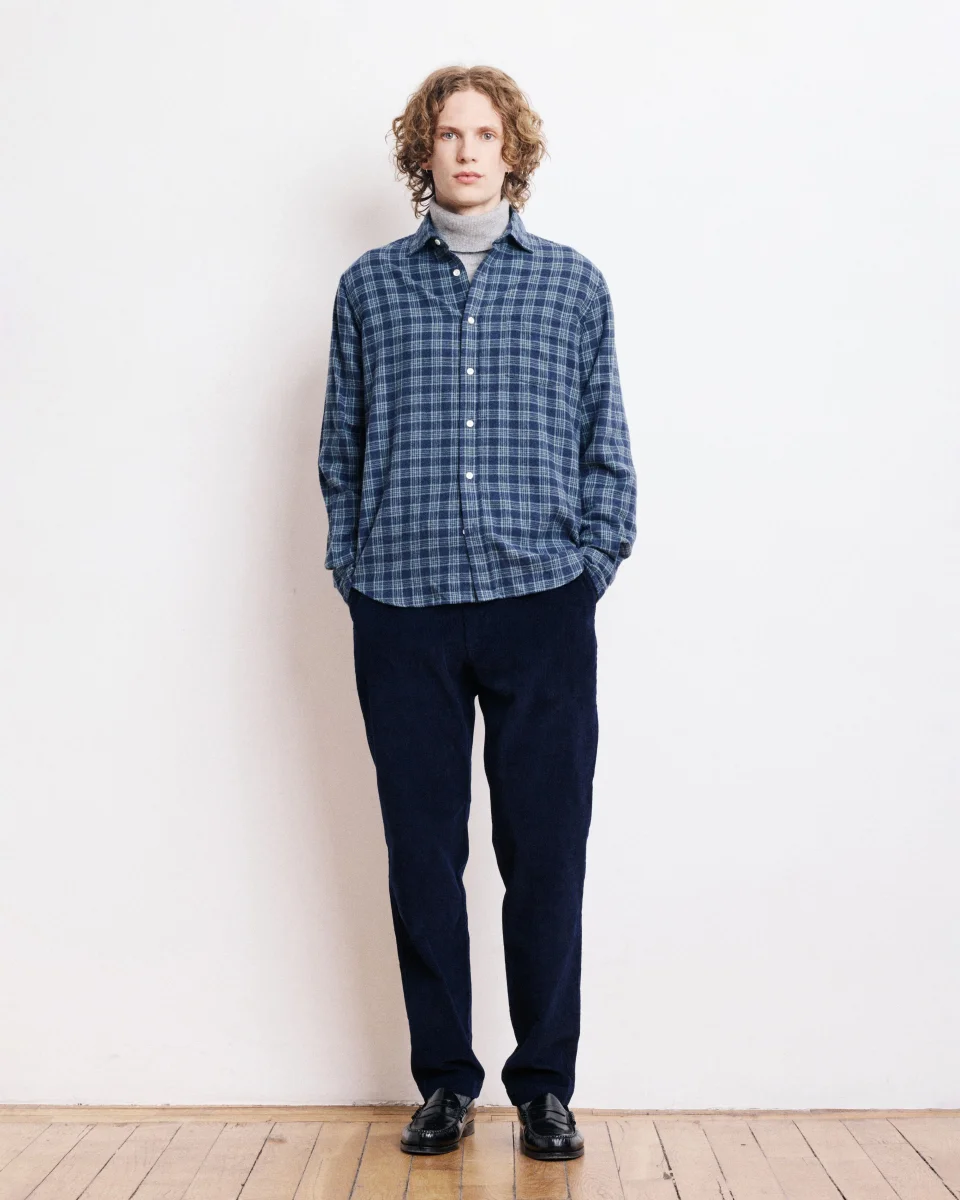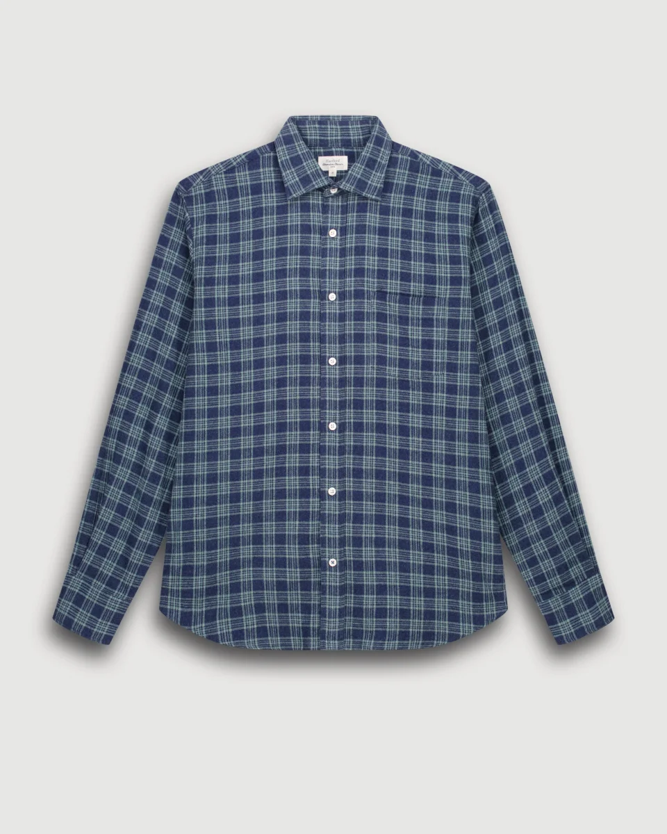 Chemise Homme en Coton Brossé à Carreaux Bleu Marine & Vert Paul
