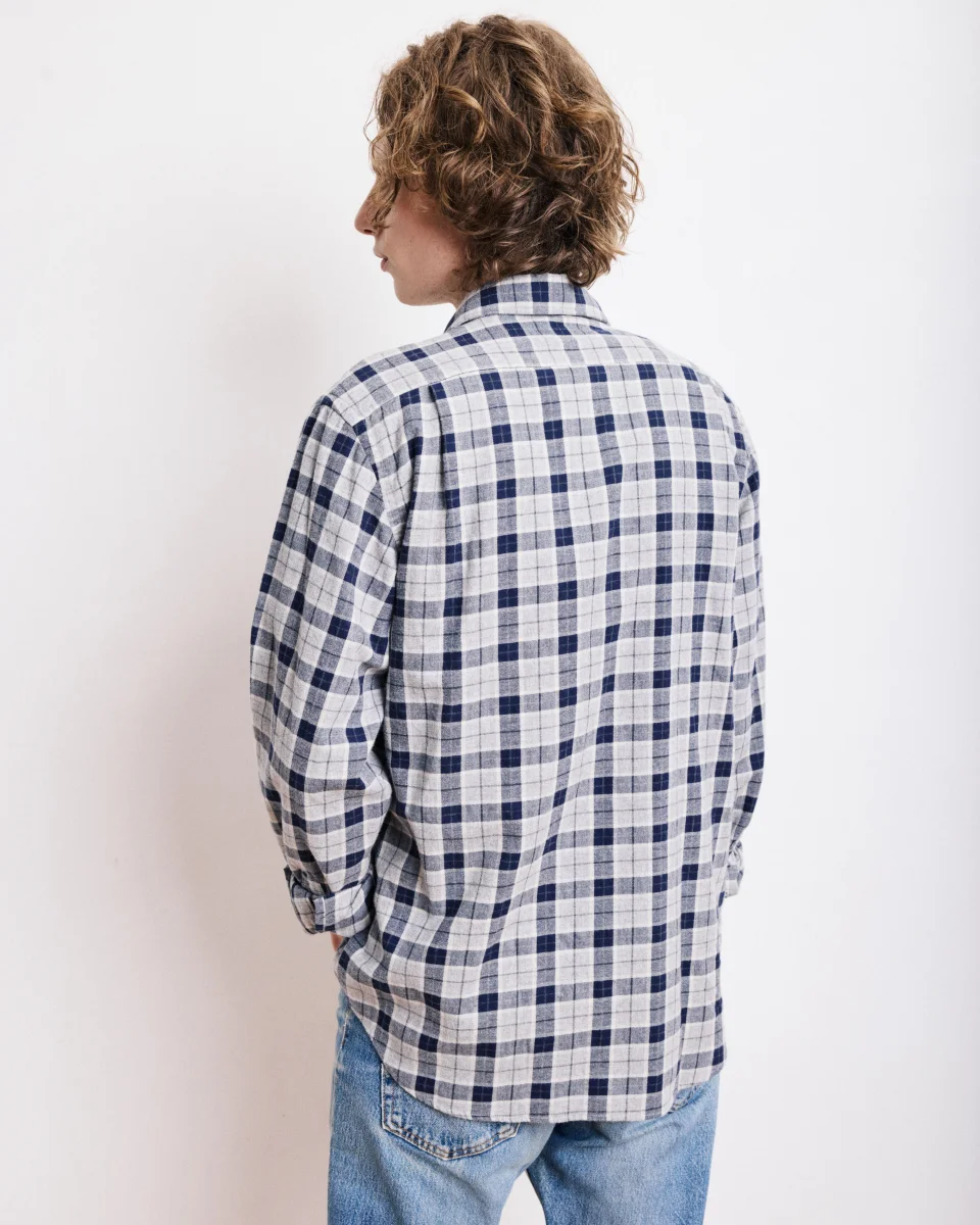 Chemise Homme en Coton Brossé à Carreaux Gris Paul