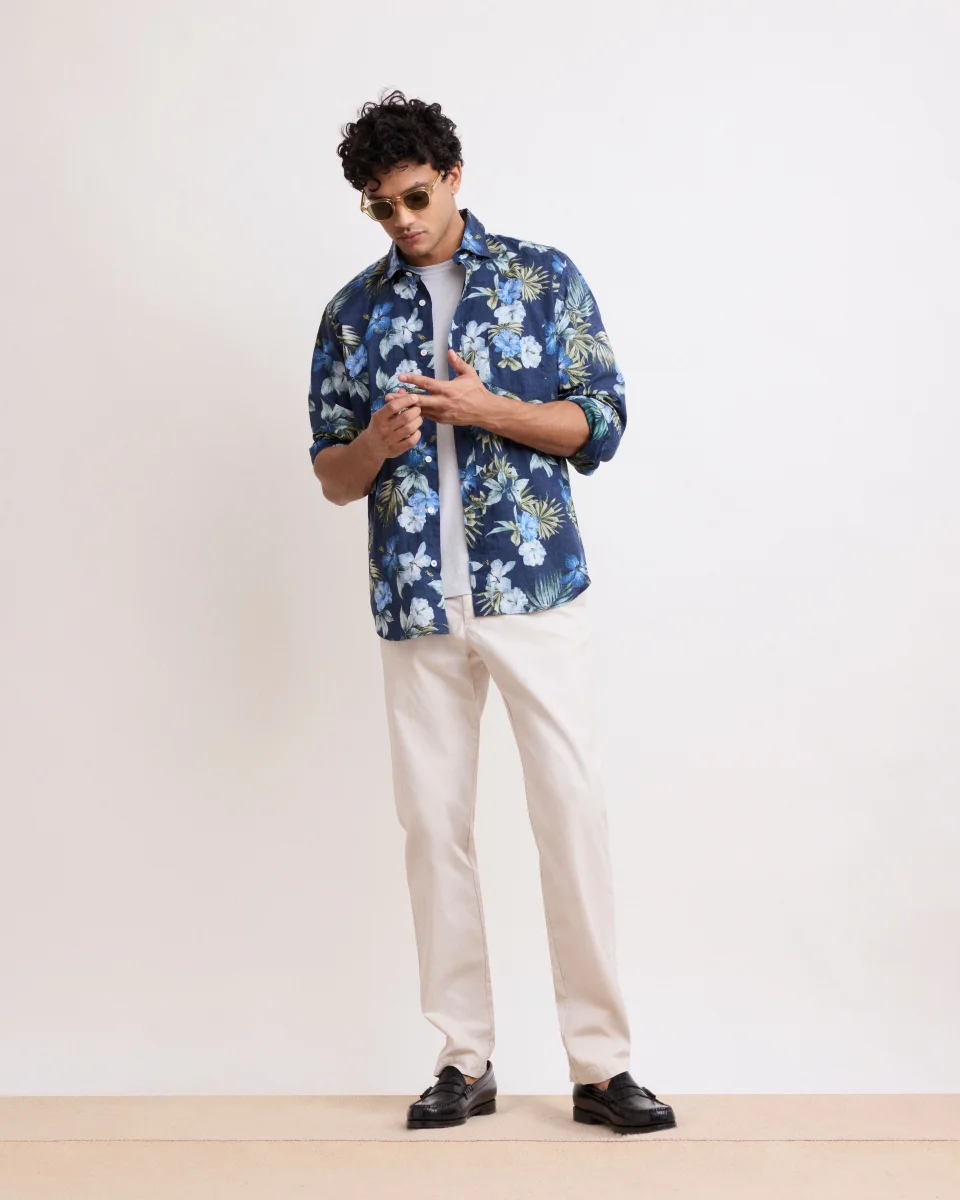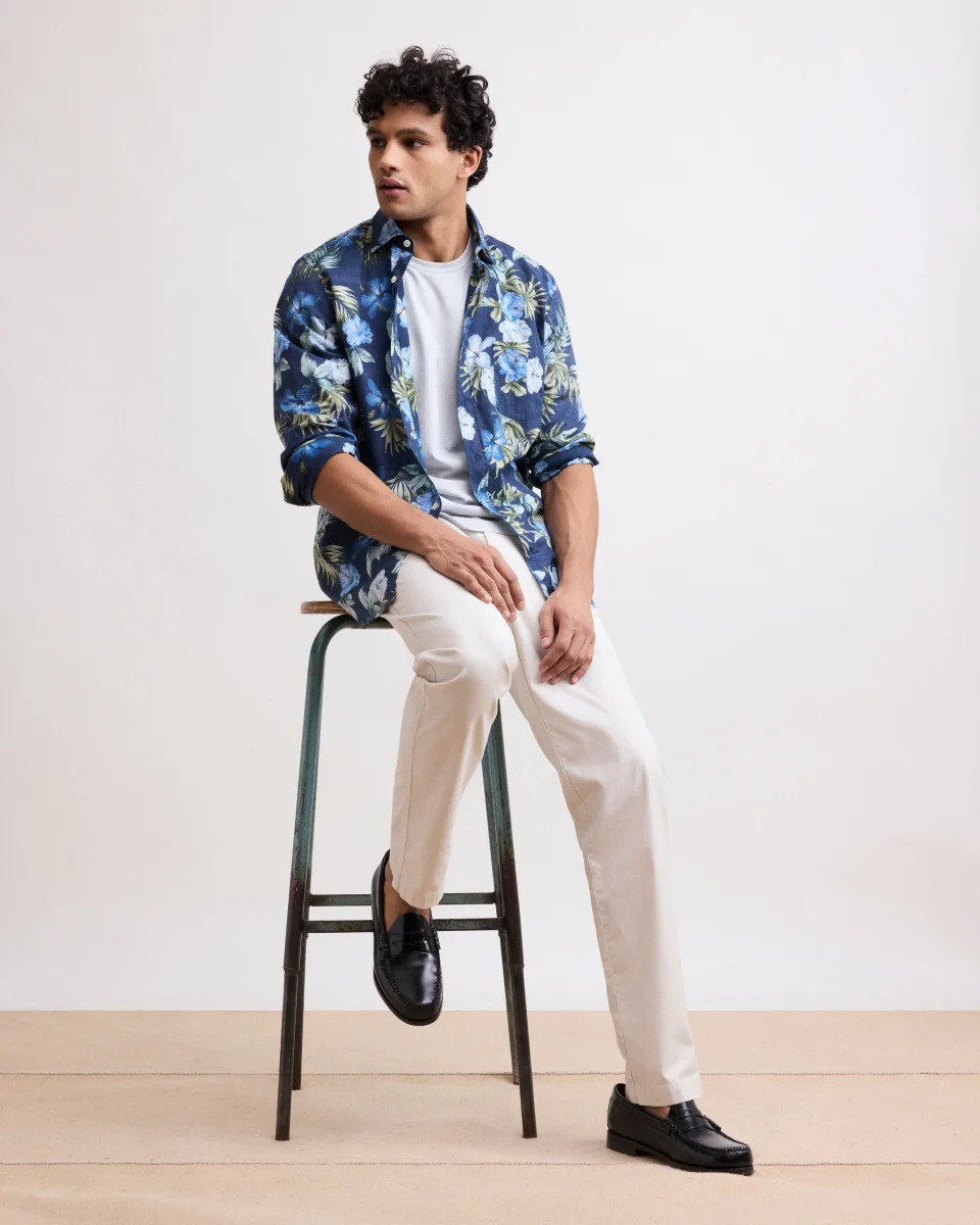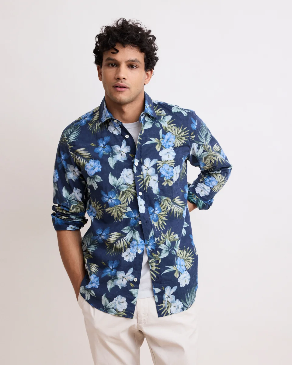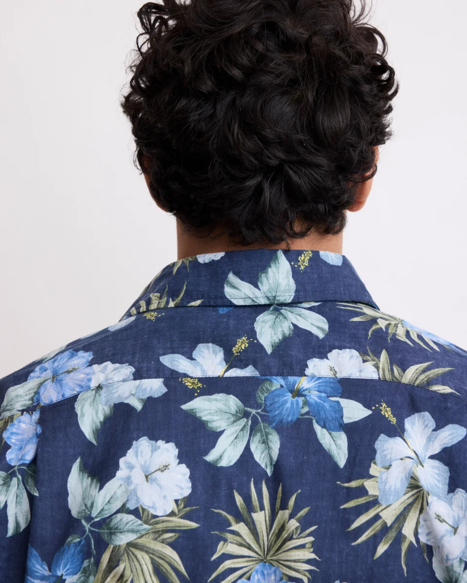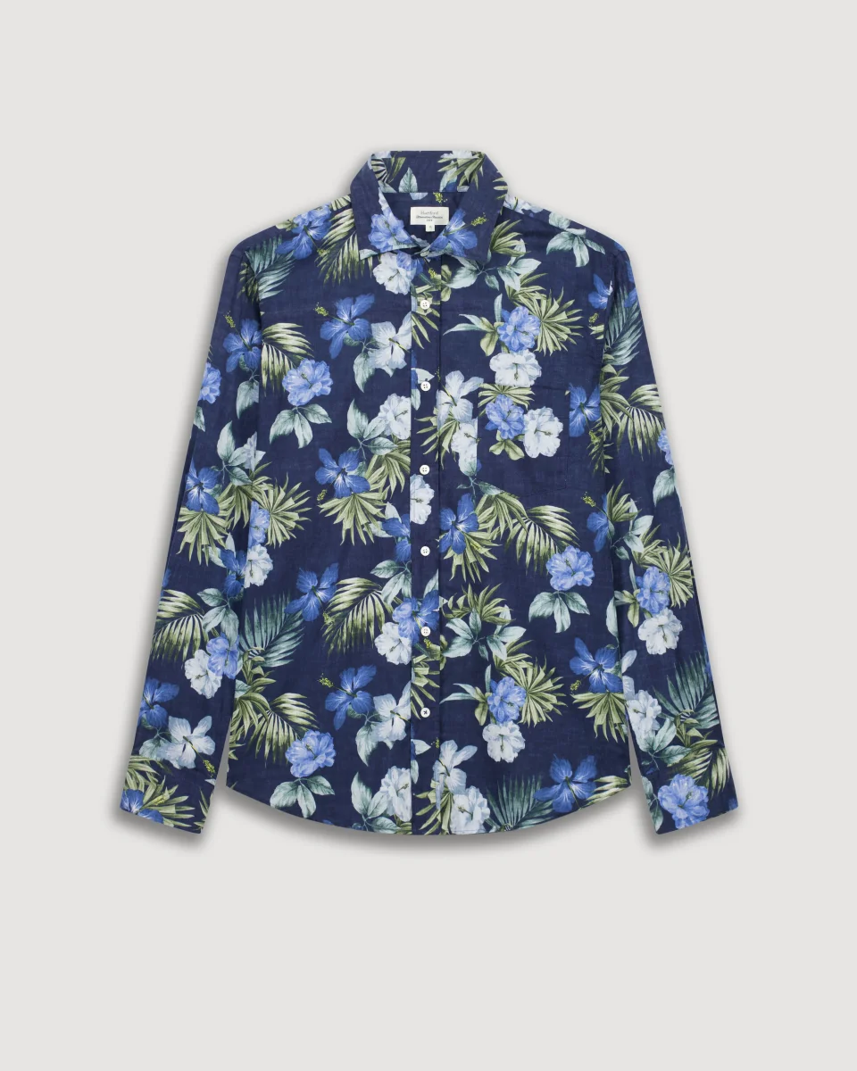 Chemise Homme en Coton Imprimé « Hawaï » Bleu Marine Paul