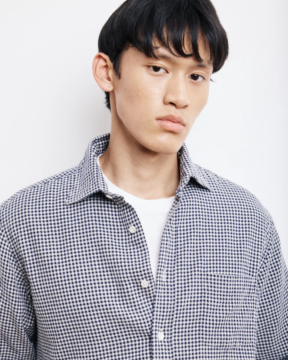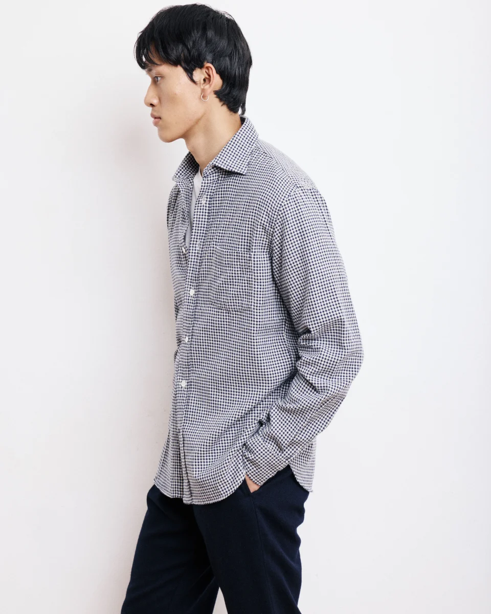 Chemise Homme en Flanelle à Carreaux Brossée Bleu Marine Paul