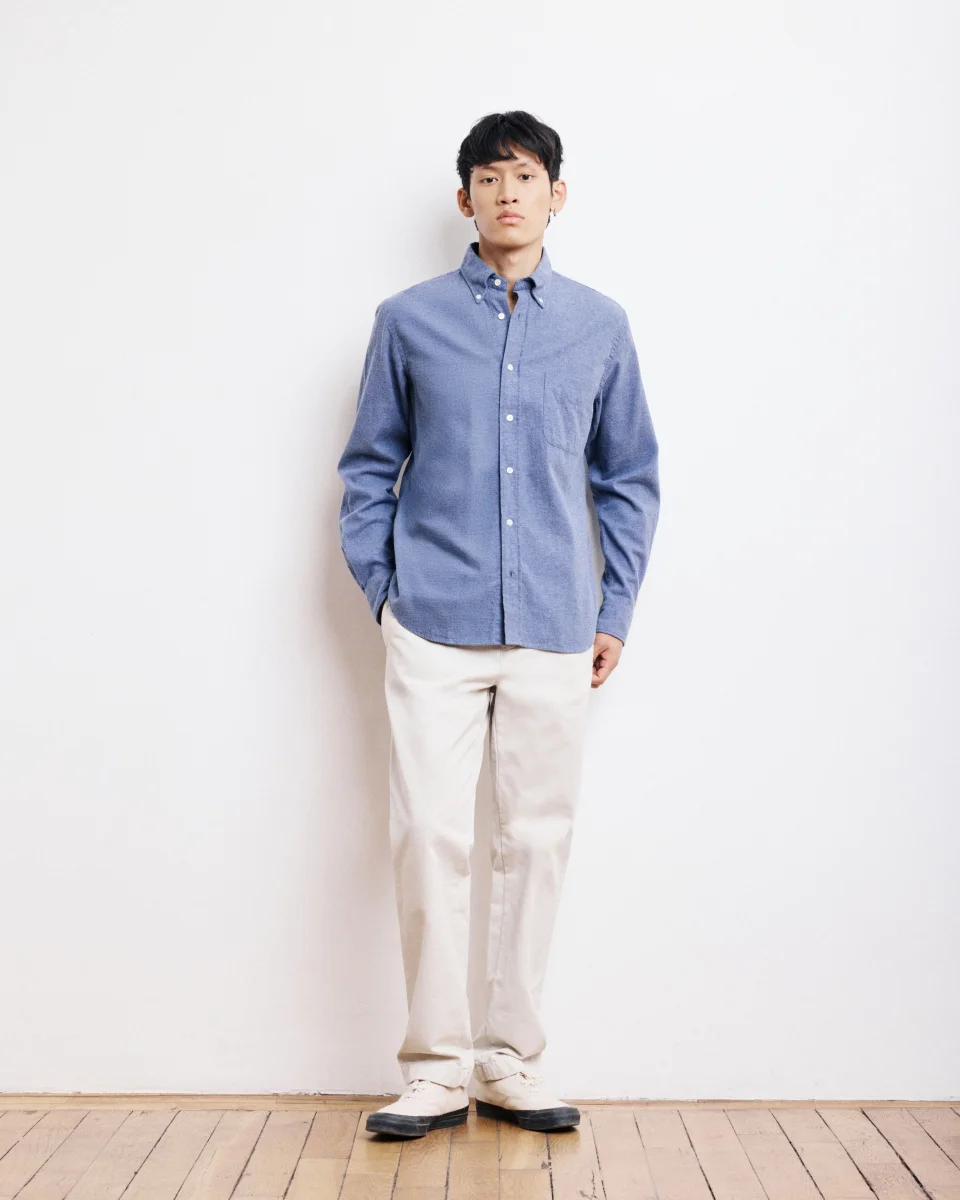 Chemise Homme en Flanelle de Coton Bleu Denim Pitt