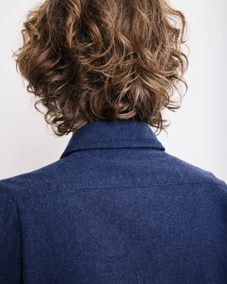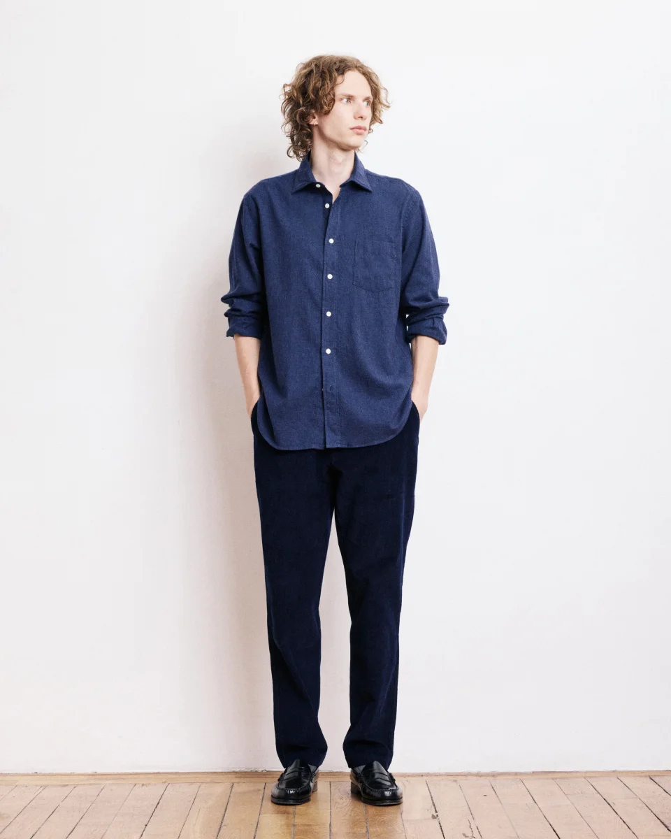 Chemise Homme en Flanelle de Coton Bleu Marine Paul