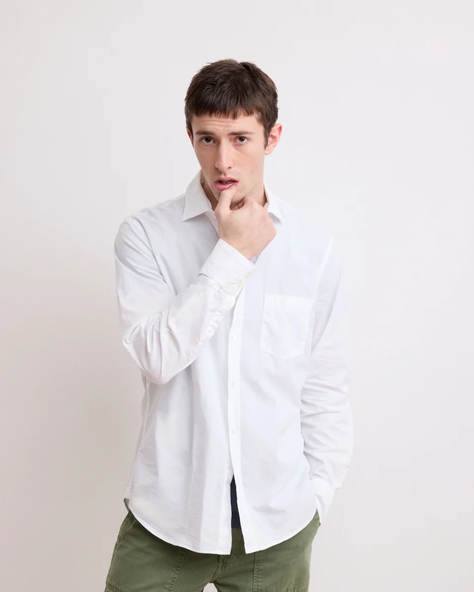 Chemise Homme en Gabardine de Coton Blanc Paul
