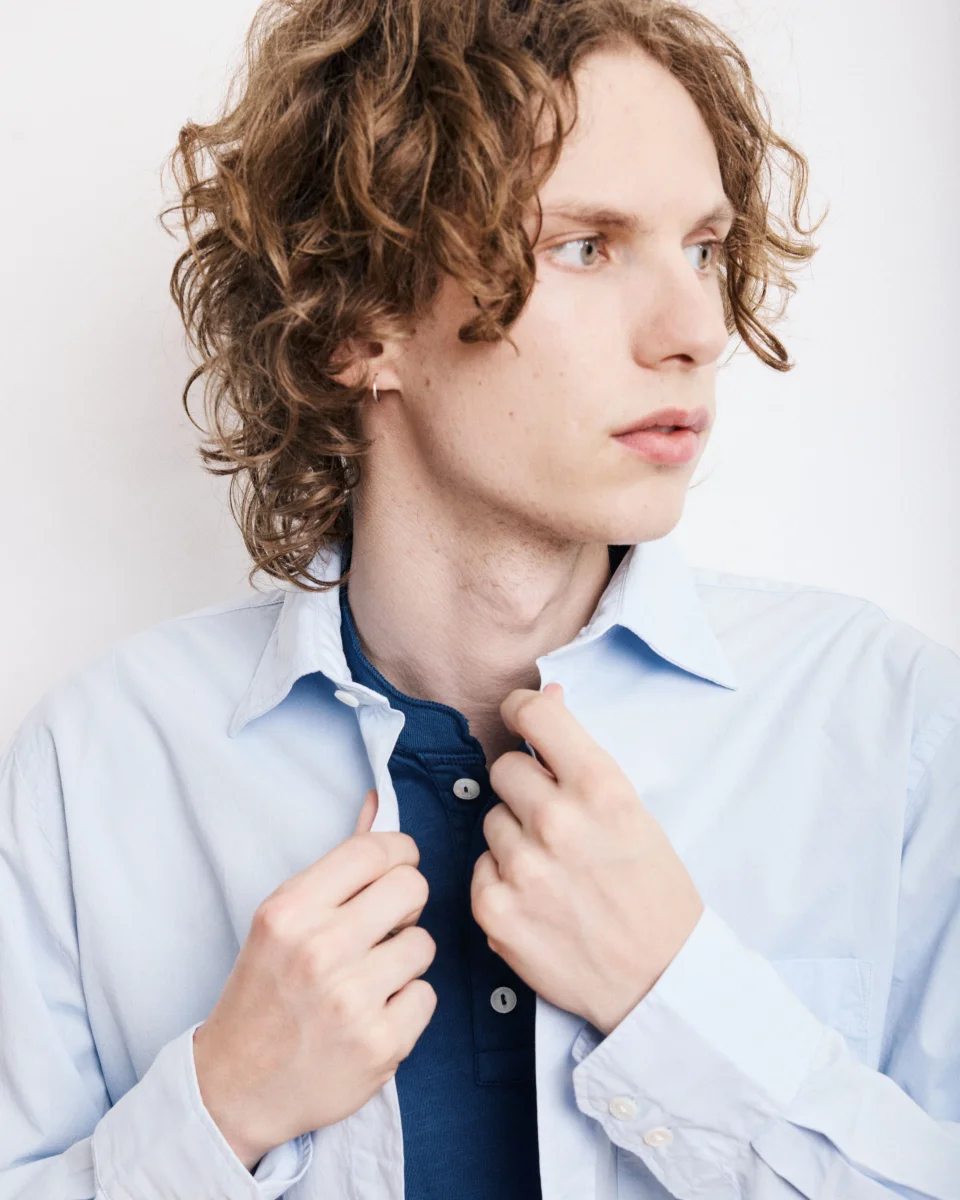 Chemise Homme en Gabardine de Coton Bleu Ciel Paul