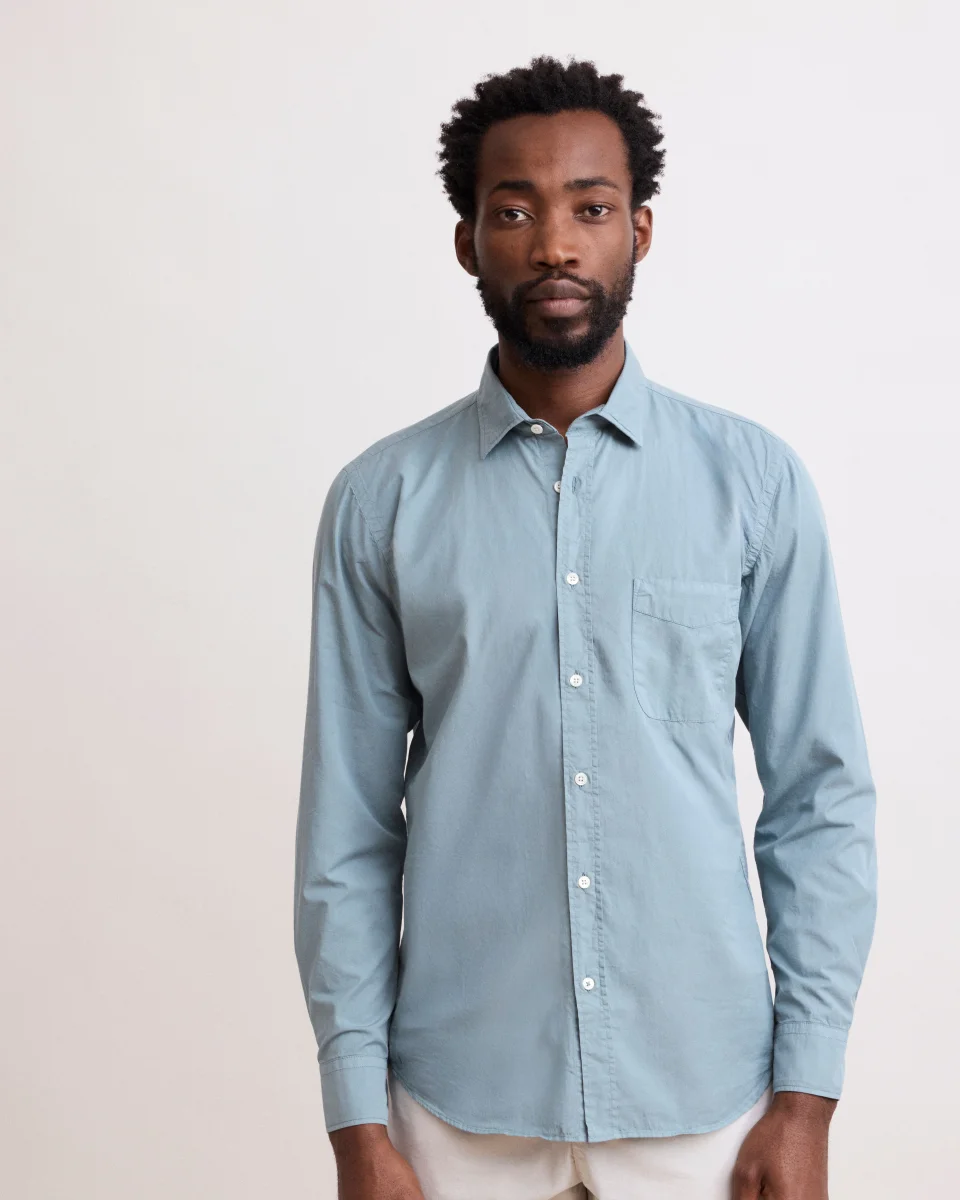 Chemise Homme en Gabardine de Coton Vert Celadon Storm