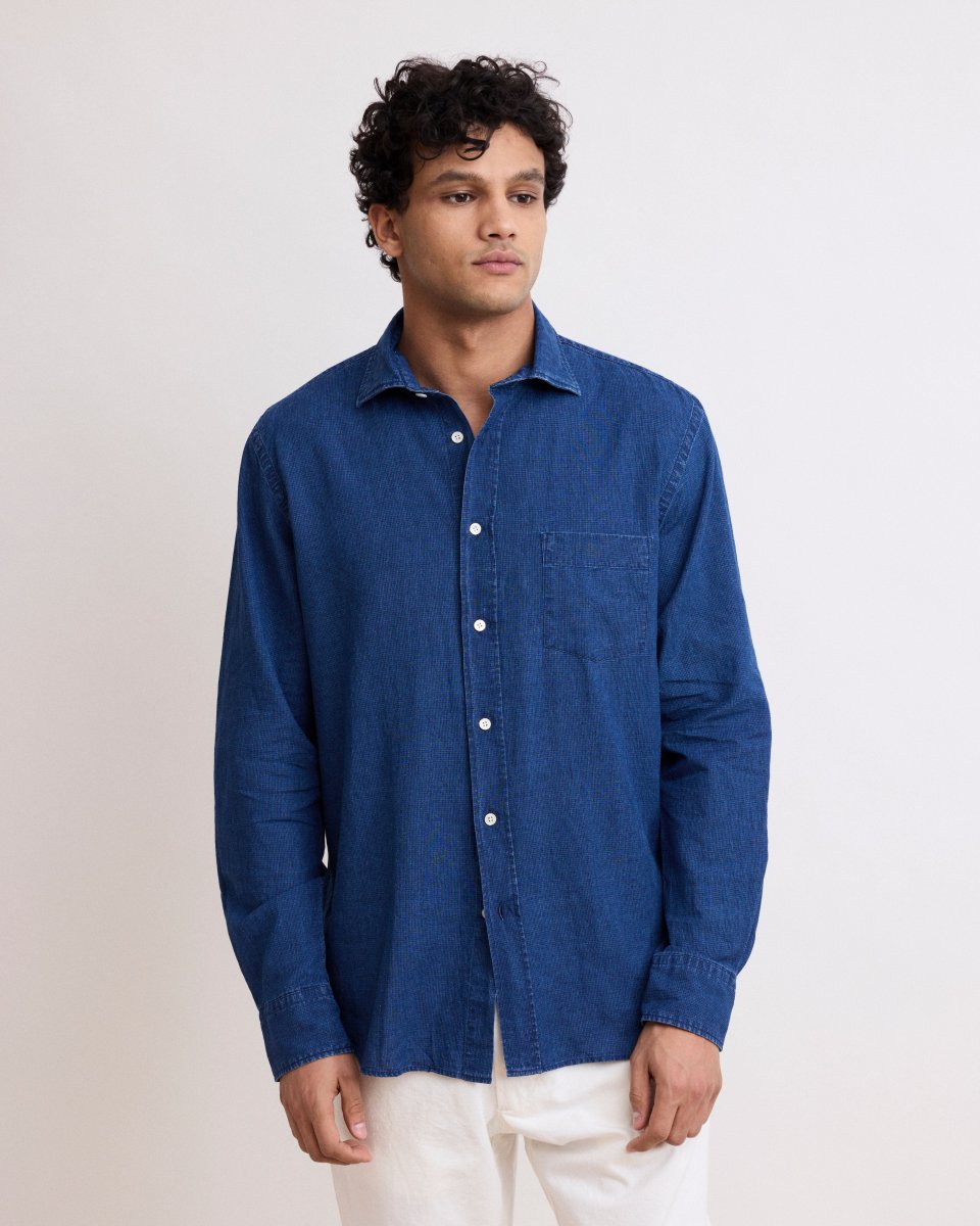 Chemise Homme en Lin & Coton à carreaux Indigo Paul