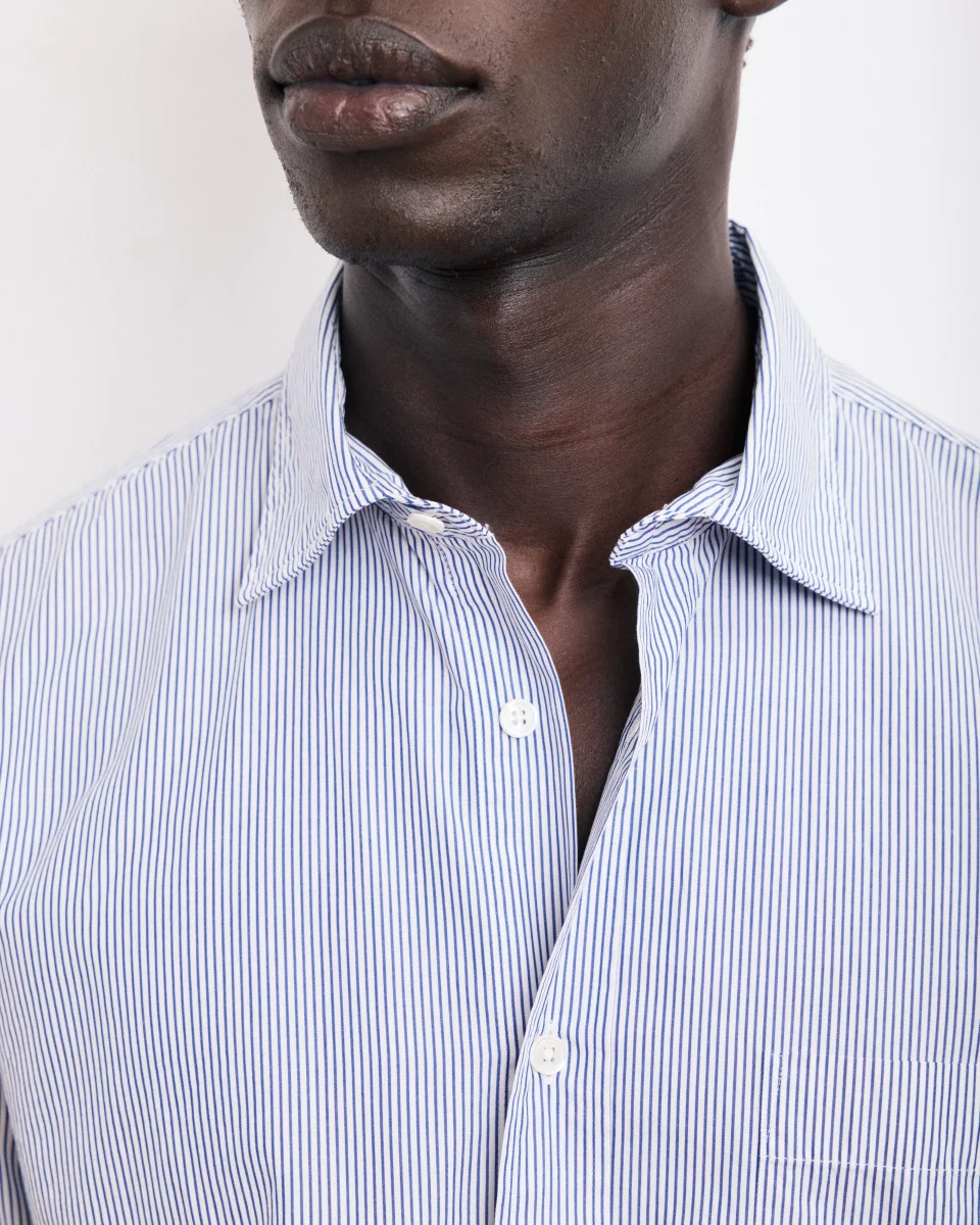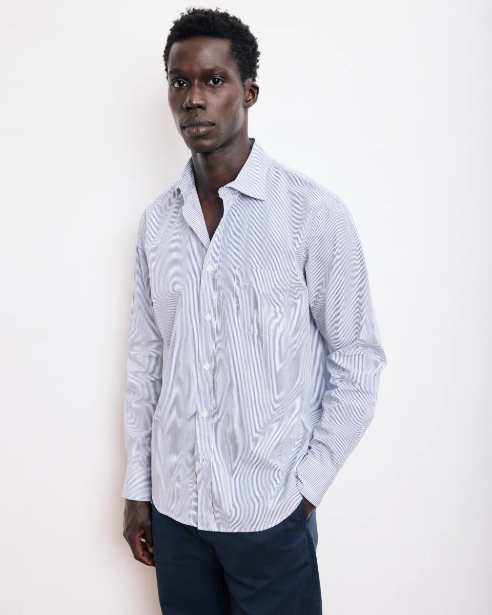 Chemise Homme en Popeline Rayée Bleu Paul