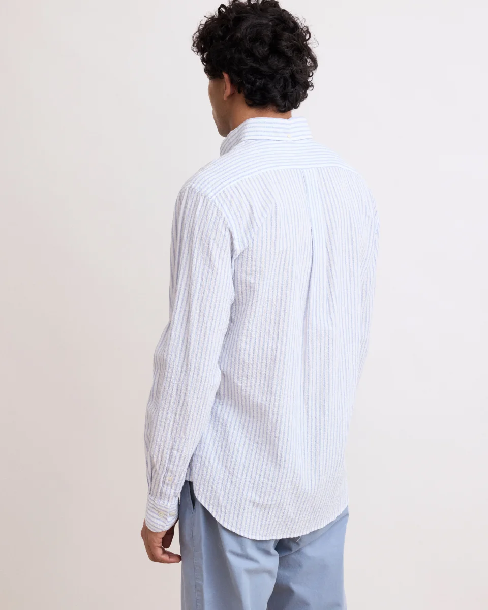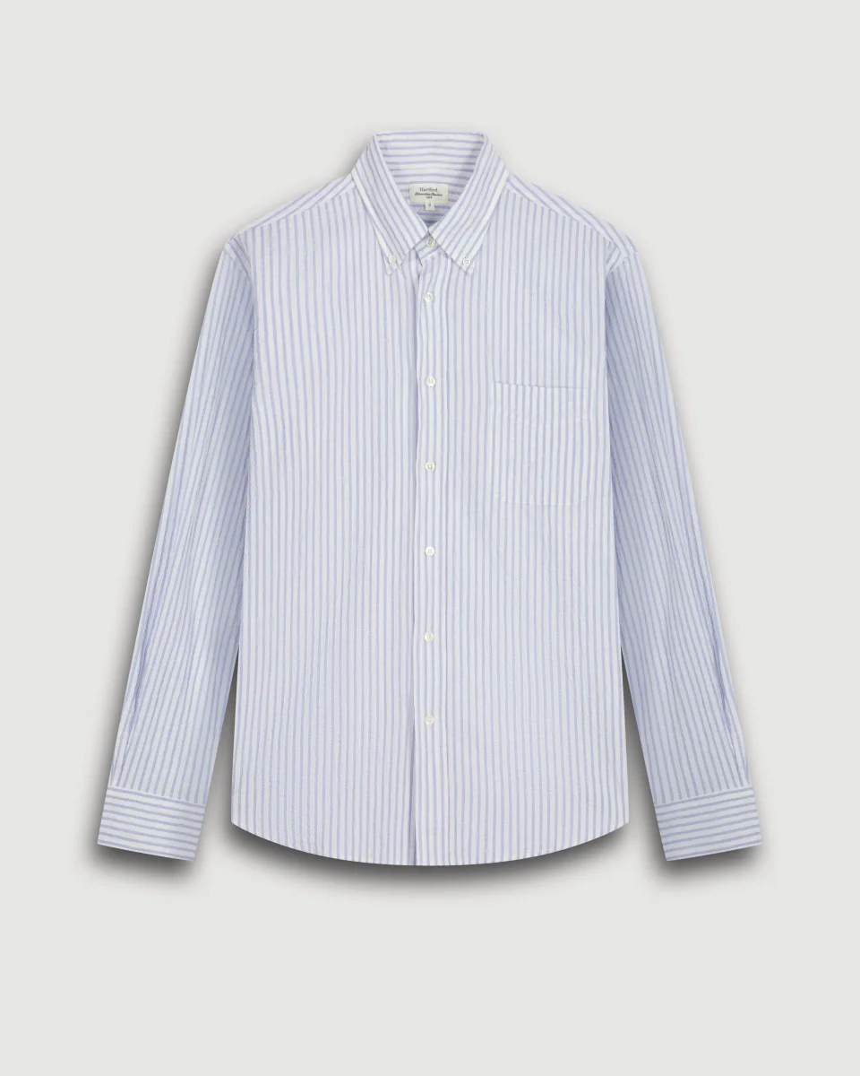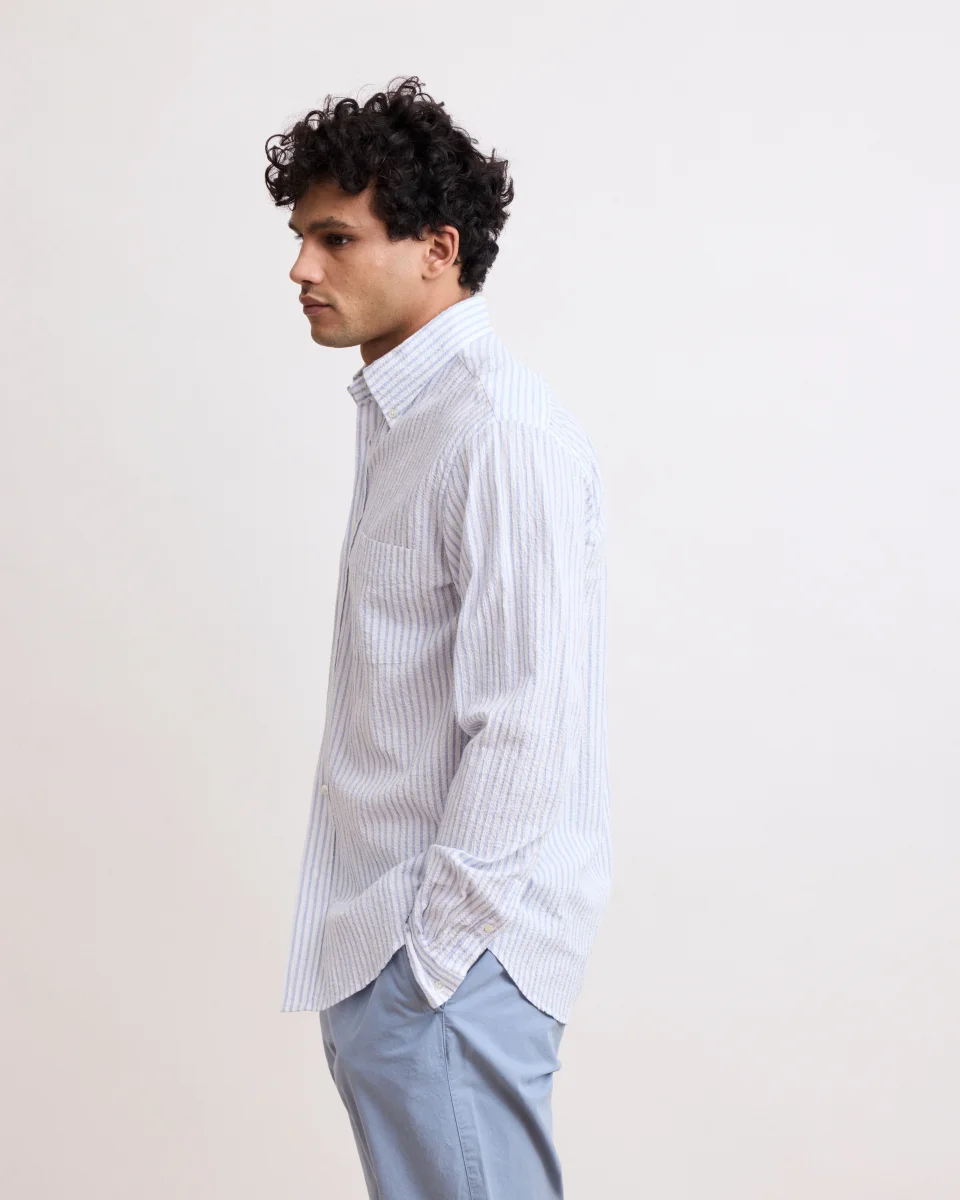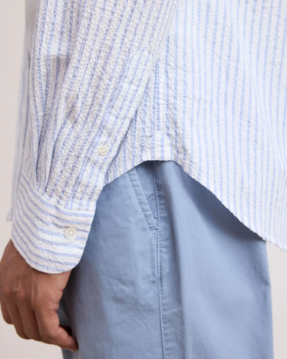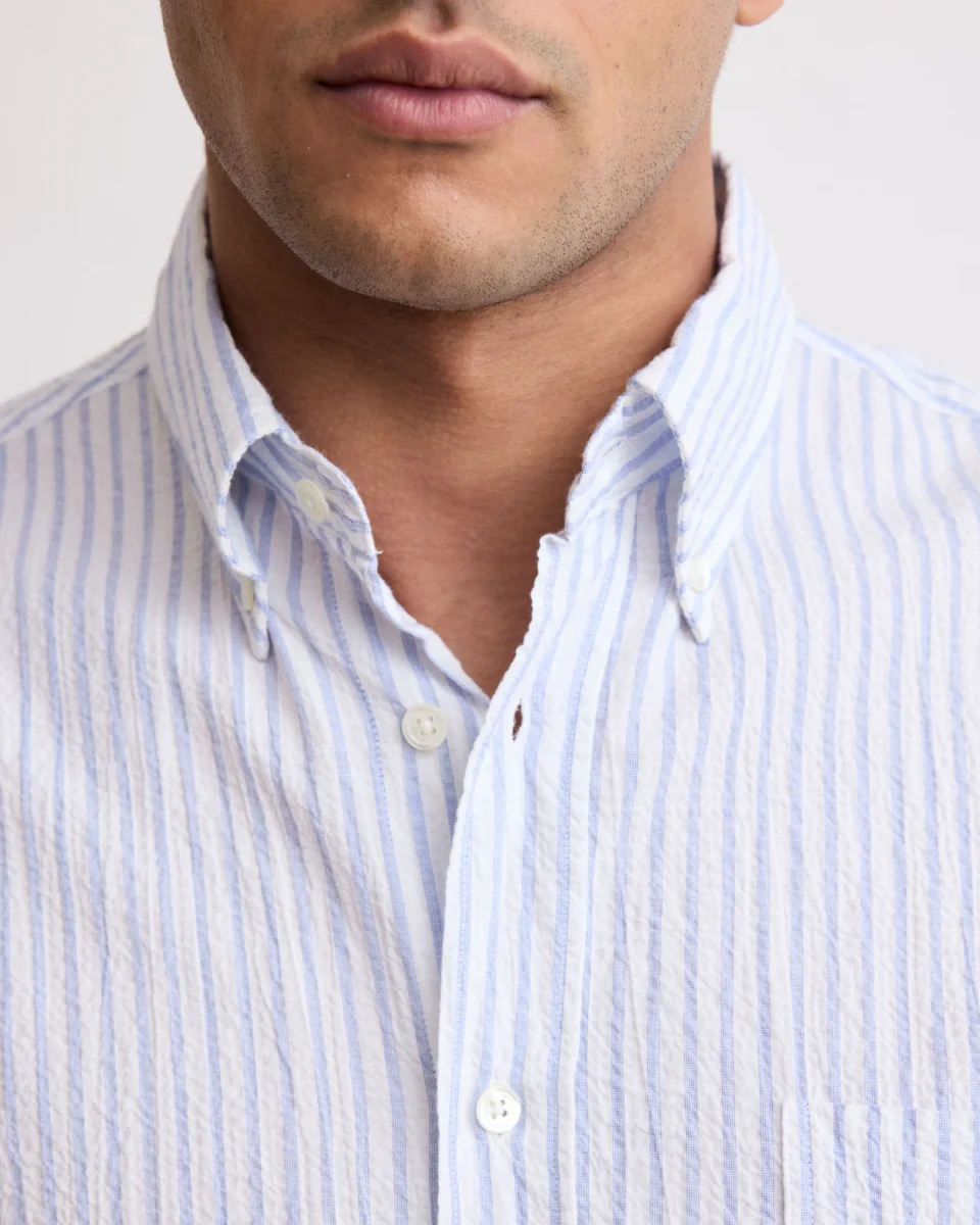 Chemise Homme en Seersucker Rayé Bleu & Blanc Pitt