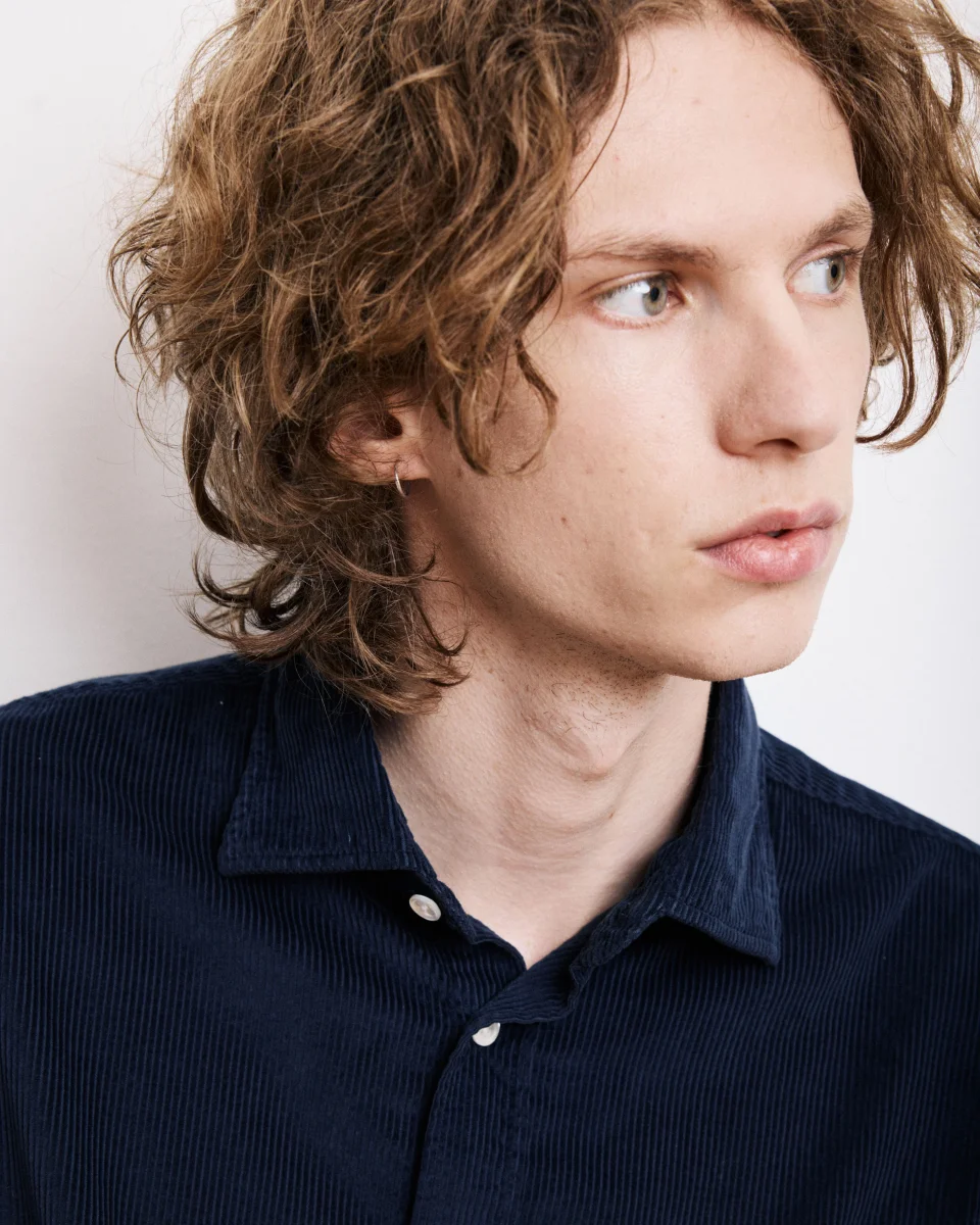 Chemise Homme en Velours Côtelé Bleu Marine Paul