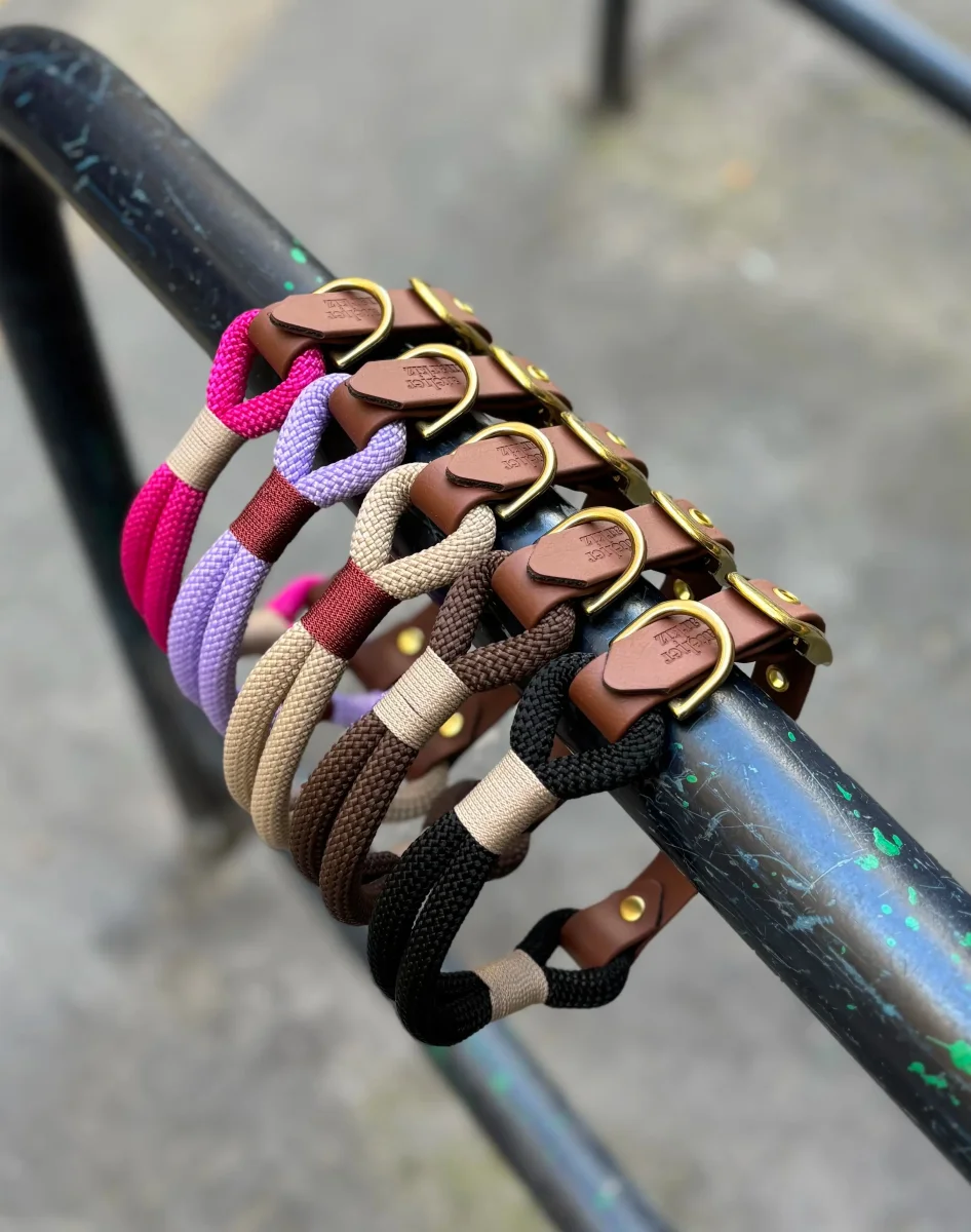 Collier pour chien en Biothane® et corde avec une bouclerie en laiton massif. Fabriqué à la main à Paris par Atelier Markiz, ces coloris sont en exclusivité chez Nugget.