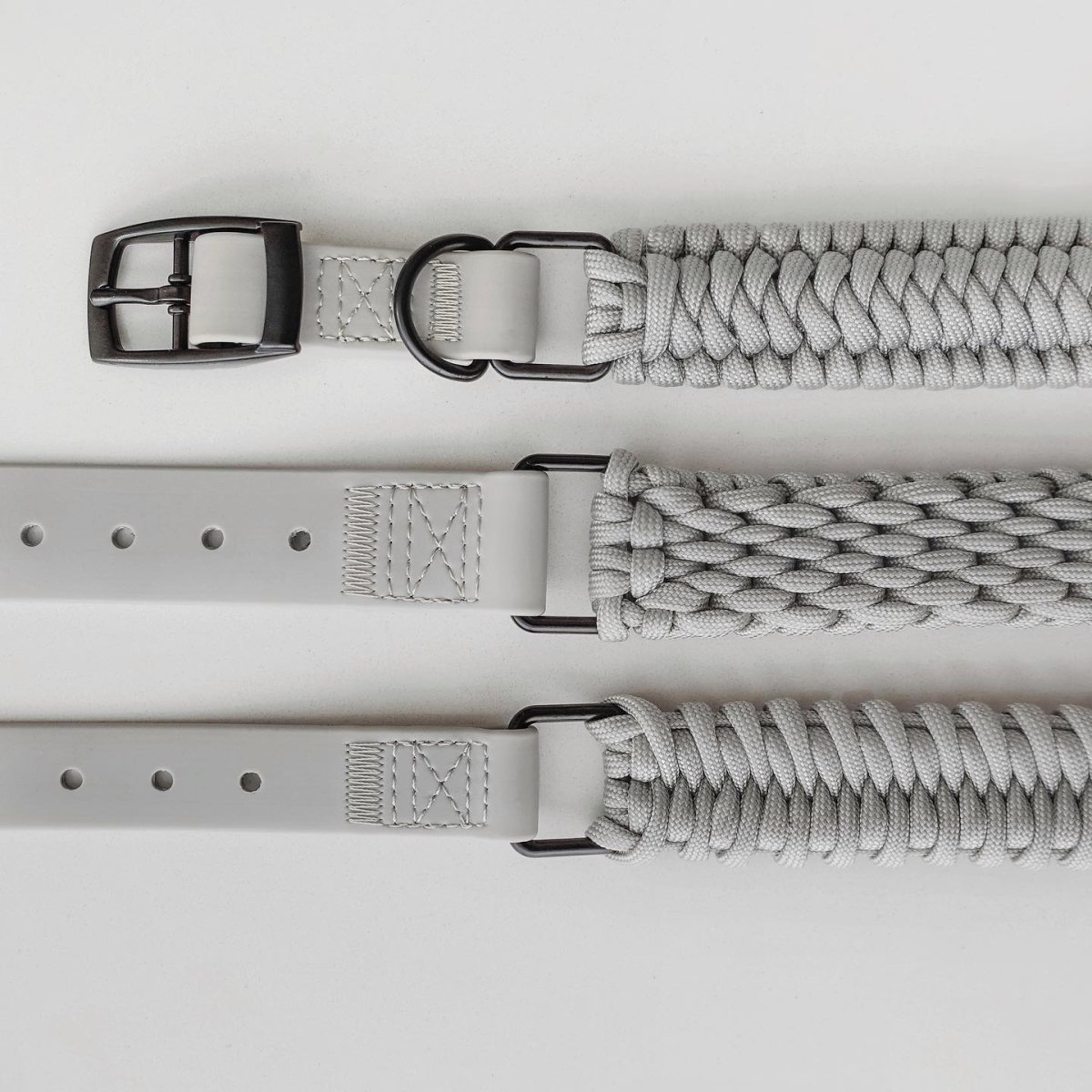 Collier Jupiter gris, tressé en paracorde avec relief au milieu du tissage pour un un look classique.