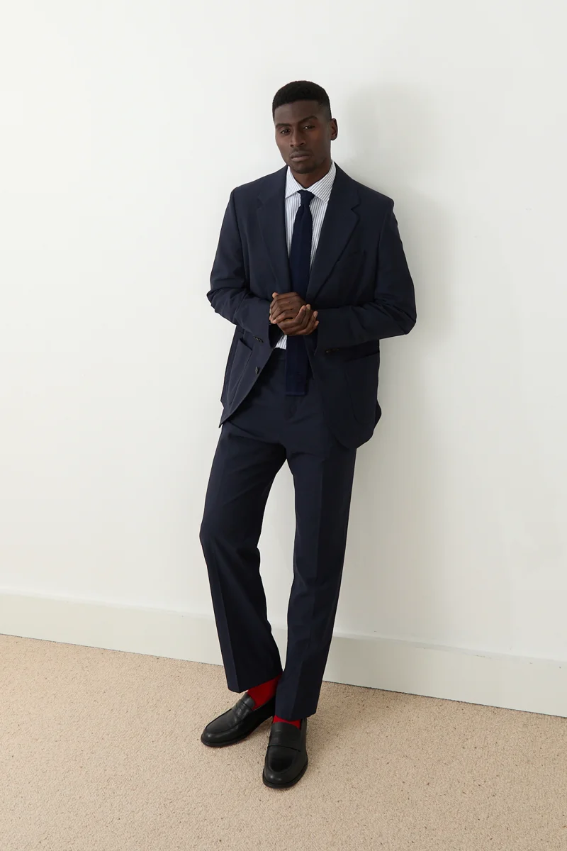 Taillé dans un tissu italien haute performance, à la fois élégant, technique et confortable, son étoffe micro-seersucker est légère, respirante, agréable au porté, et sèche rapidement, tout en offrant une texture subtile qui enrichit la silhouette.