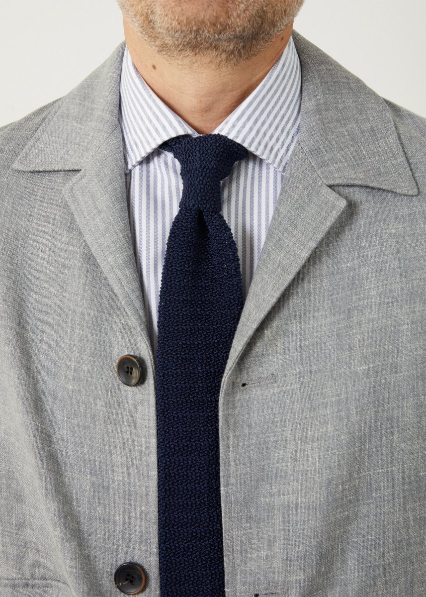La Crispy est une cravate en soie à la texture craquante qui sublimera vos plus belles tenues habillées. Elle est tricotée en Allemagne sur des machines uniques au monde puis mise en forme sur des planches de bois pendant 24h avant d’arriver à sa forme finale.