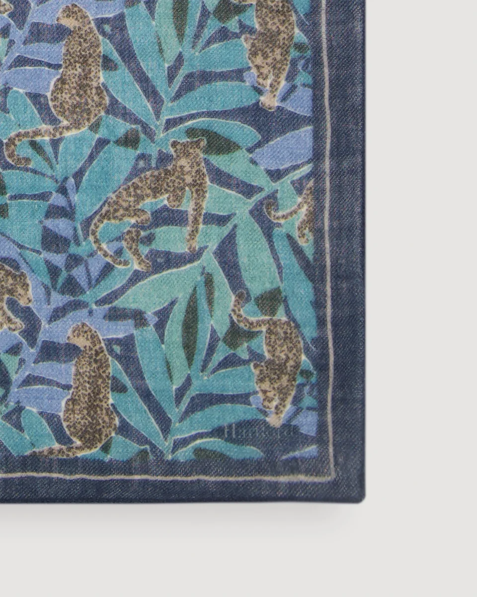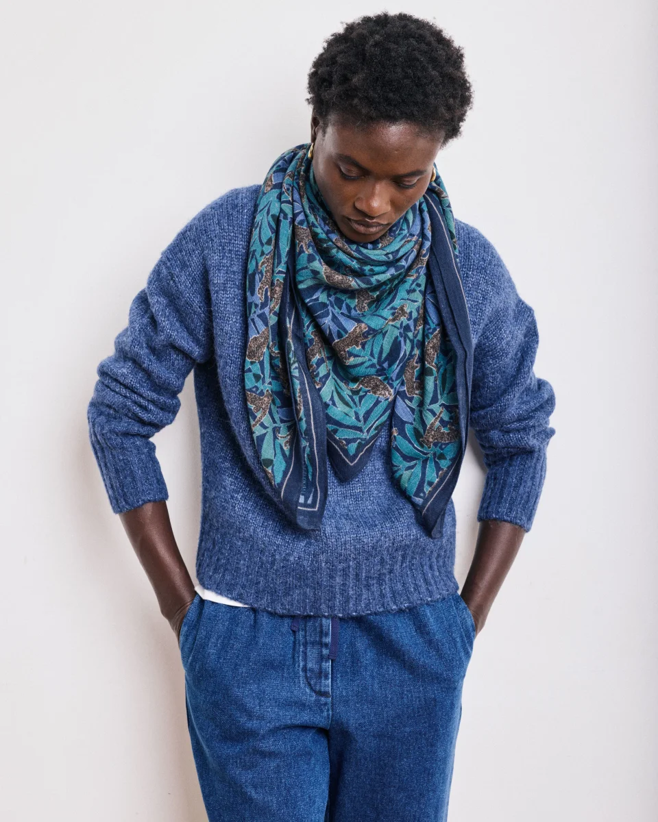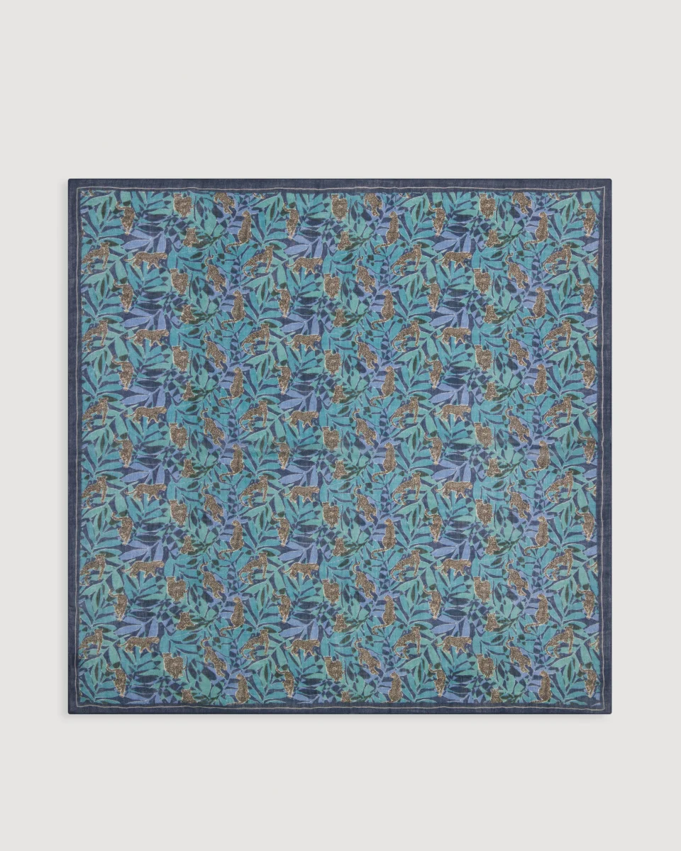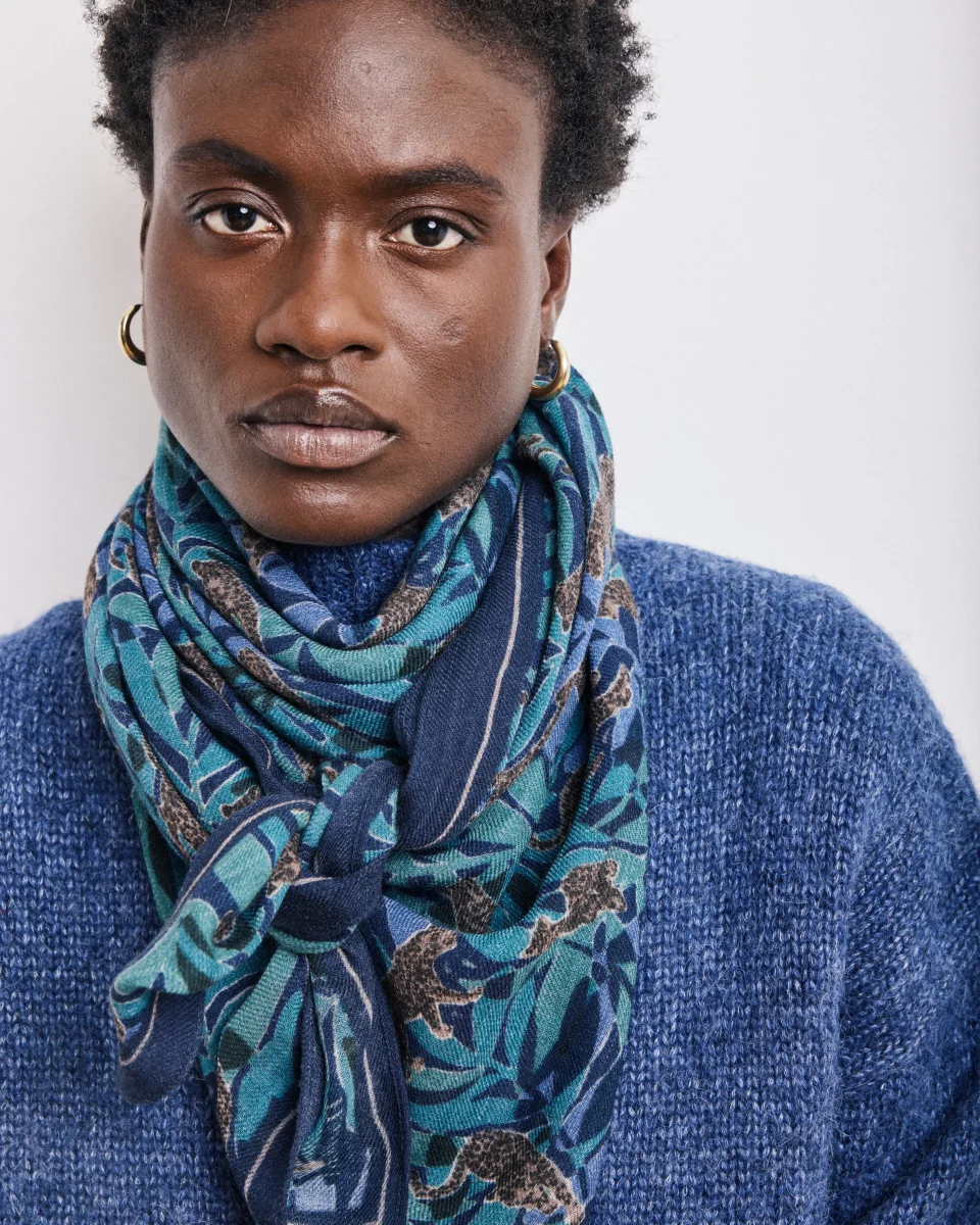 Echarpe Femme en Laine Imprimé Bleu Jungle