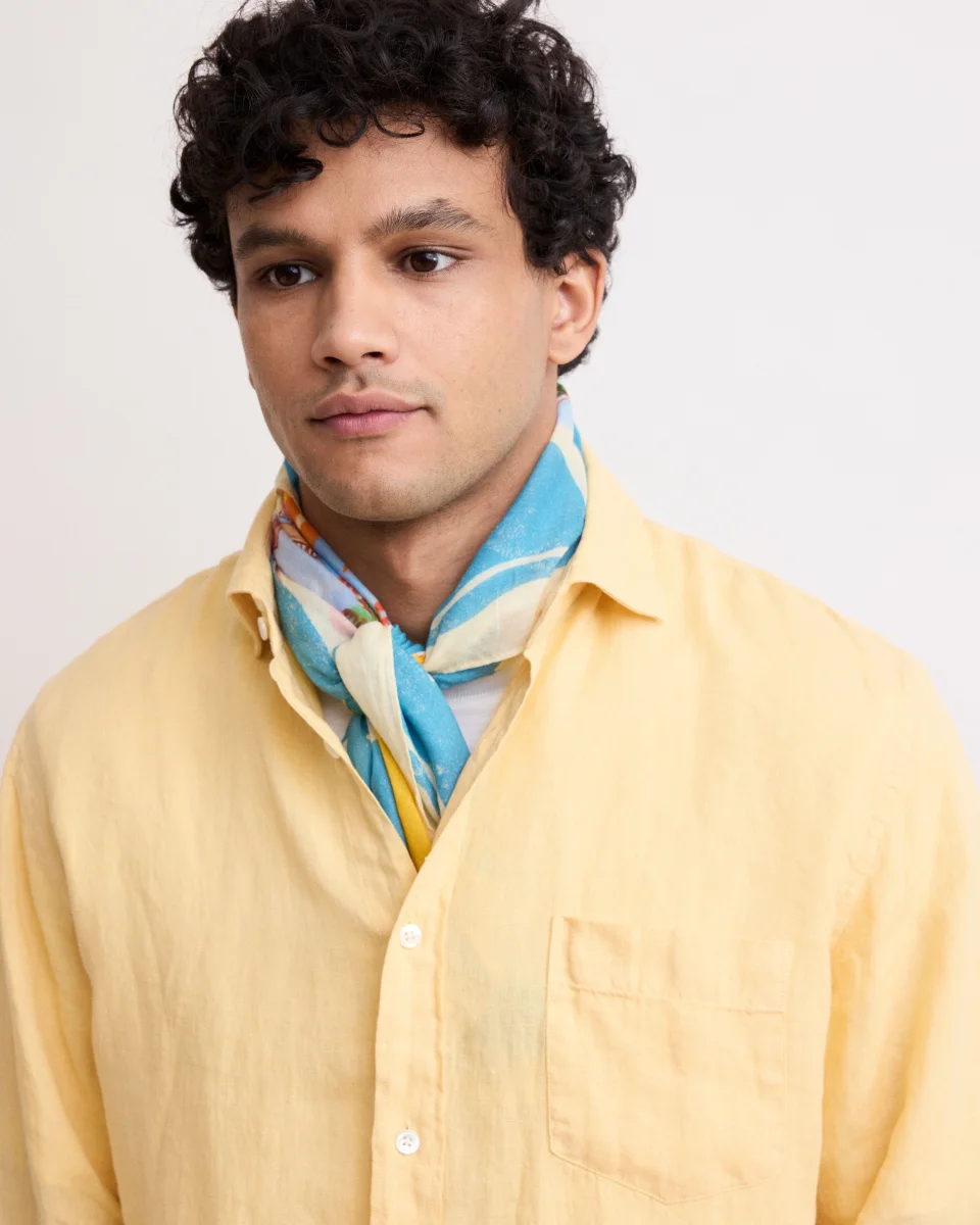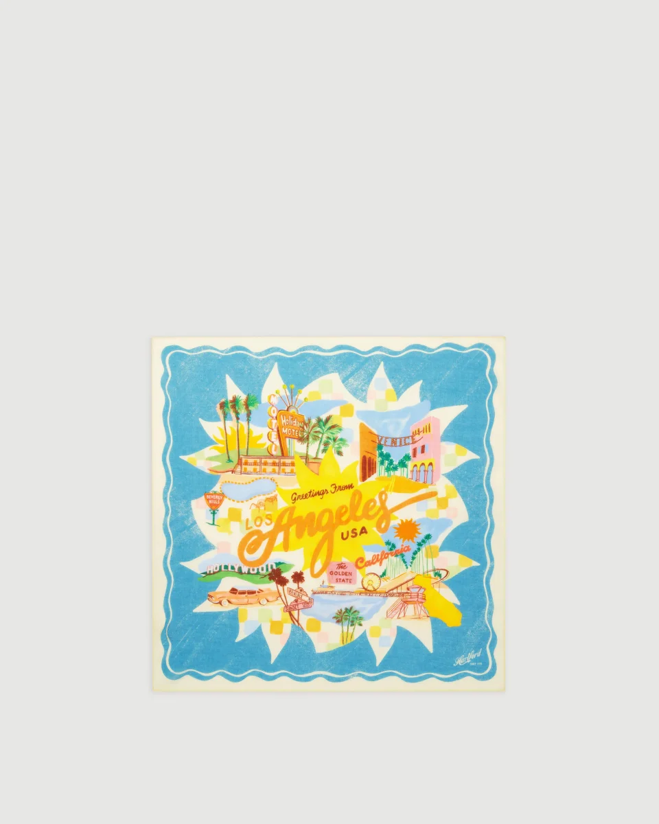 Echarpe homme en voile de coton imprimé « Souvenir from Los Angeles ». Format bandana carré.