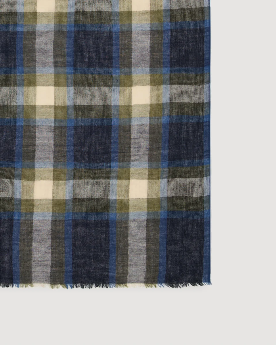 Echarpe Homme en Laine à Carreaux Vert & Bleu Tartan