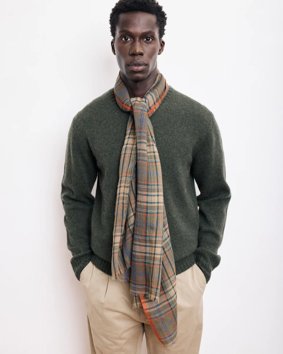 Echarpe Homme en Laine à Carreaux Vert & Rouge Tartan