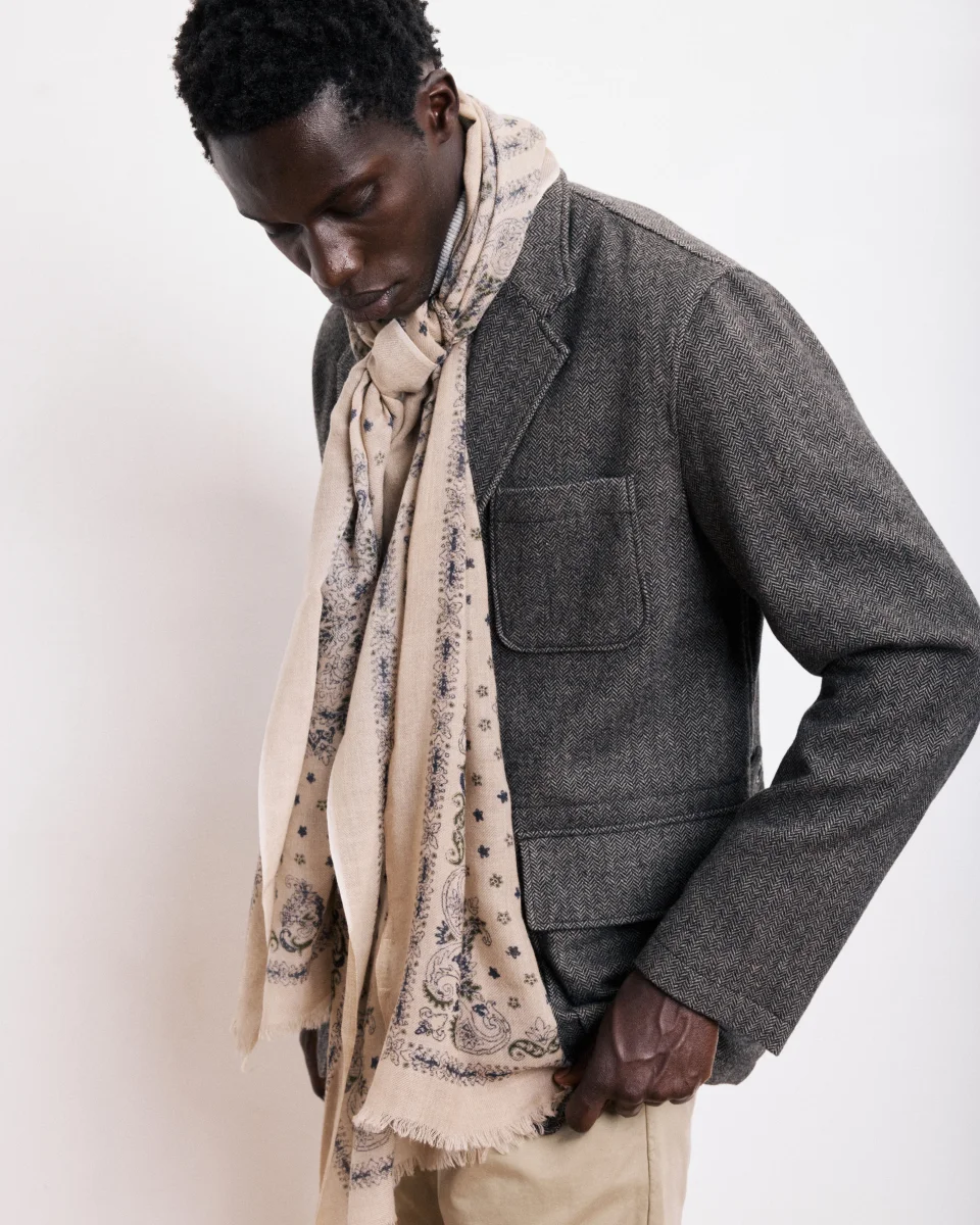 Echarpe Homme en Laine Imprimée Beige Bandana
