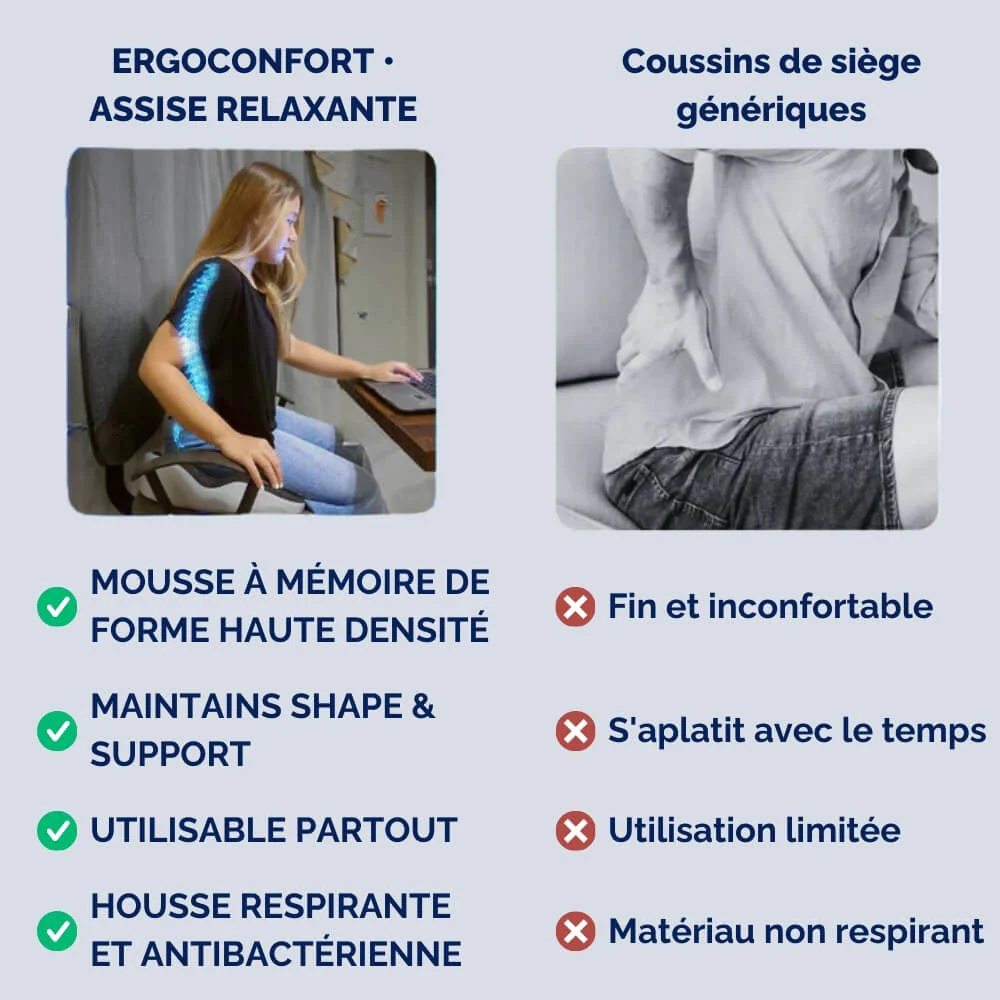 Découvrez le confort inégalé et le soulagement rapide qu’offre l’ErgoConfort. Spécialement conçu pour apaiser les douleurs dorsales et la sciatique, ce coussin unique vous permet de vous sentir revitalisé dès que vous vous asseyez. Visualisez-vous assis avec aisance tout au long de la journée, sans aucune gêne.