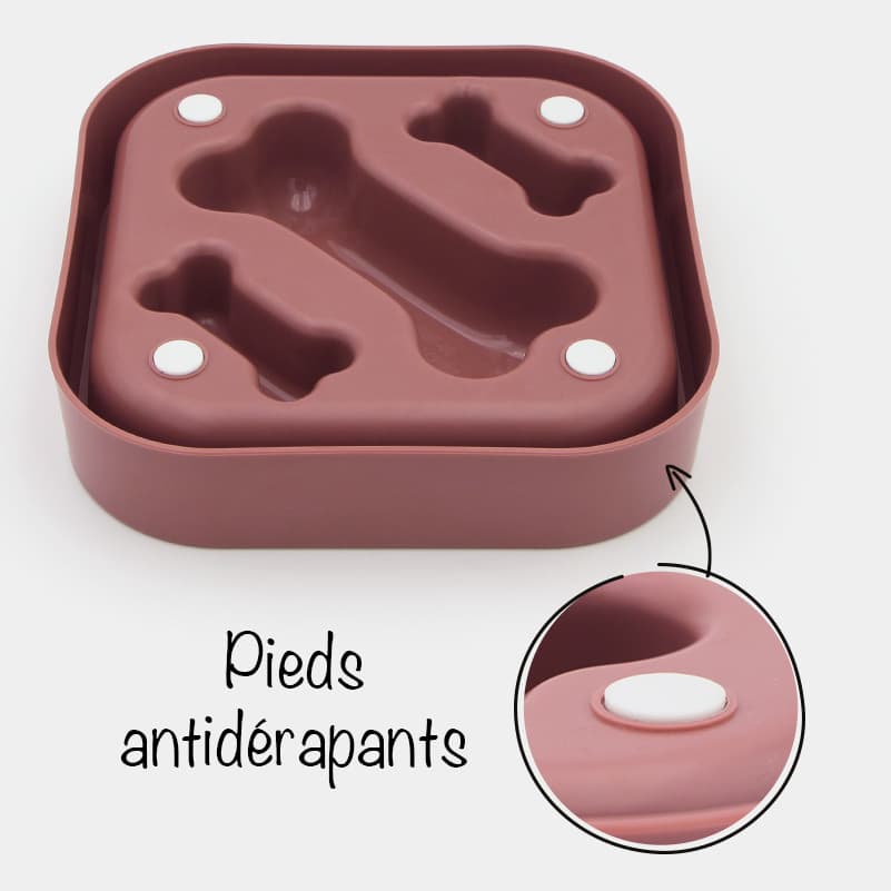 4 pieds antidérapants, situés sous la gamelle anti glouton, lui assurent une bonne stabilité et lui évitent de trop glisser lorsque votre chien essaiera d’attraper sa nourriture entre les obstacles.