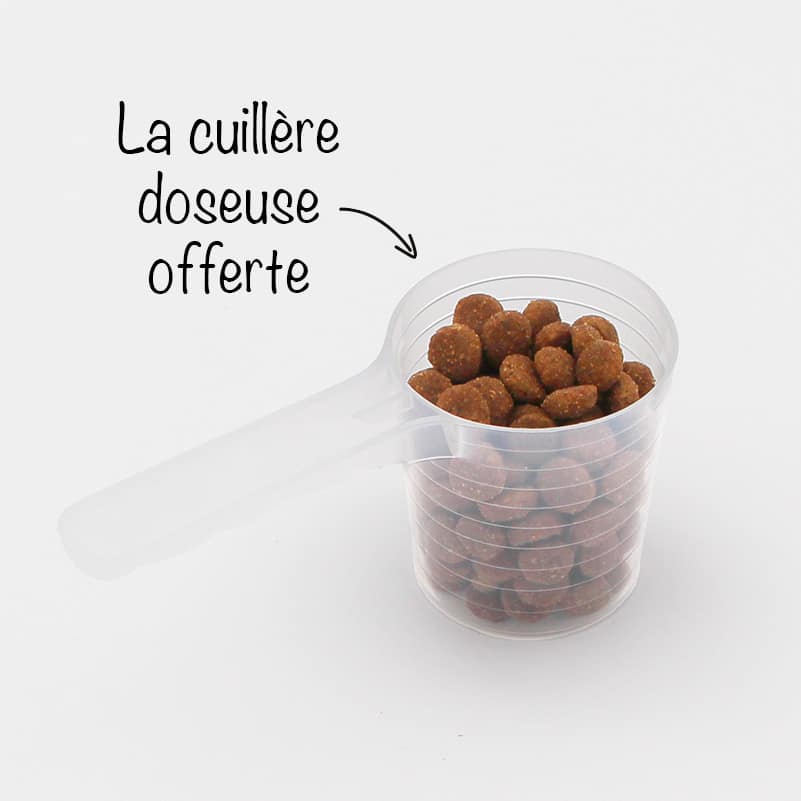 Offert : cuillère doseuse permettant de définir précisément une portion journalière.