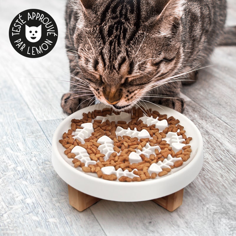 Recommandée pour les chats qui mangent trop vite, chats en surpoids ou obèses, chats gourmands ou gloutons, chats souffrant de troubles digestifs et chats allergiques au plastique.
