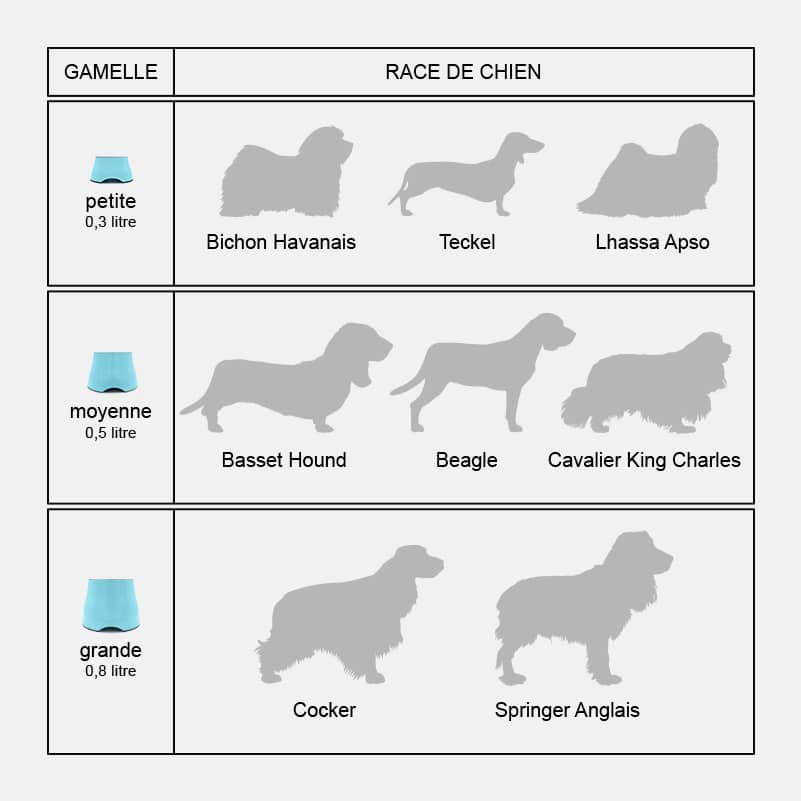 Choisissez la gamelle adaptée à la taille de votre chien en vous aidant de notre tableau…