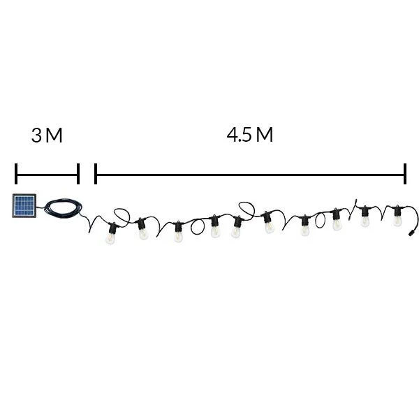 Idéale pour agrémenter avec élégance votre décoration de jardin, optez pour la guirlande solaire extérieure Guirland Solar 200 LM. Son look tendance et moderne vous séduira à coup sûr, en effet, cette guirlande solaire extérieure est composée de 10 ampoules LED avec filament apparent ! On adore ! Cette guirlande solaire extérieure offre un éclairage blanc chaud, incontournable pour créer une ambiance cocoon et intimiste. Guirland Solar 200 LM est une guirlande solaire lumineuse qui se recharge grâce aux rayons du soleil, elle dispose d’un panneau solaire déporté facilitant ainsi sa recharge.