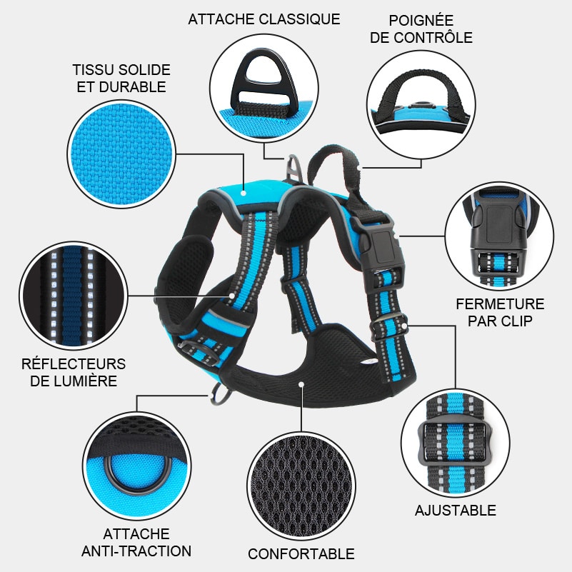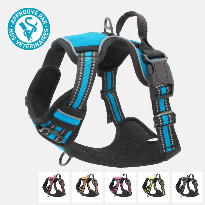 Recommandé par notre vétérinaire pour les chiens qui tirent, les chiots en apprentissage, les chiens réactifs, excités ou souffrant de troubles respiratoires et articulaires.
