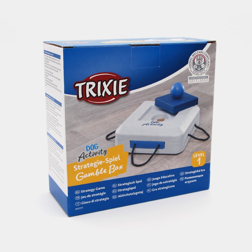 Le Gamble Box est un jeu de stratégie niveau 1 qui mettra votre chien au défi de trouver la bonne technique pour déloger des friandises que vous y aurez cachées.