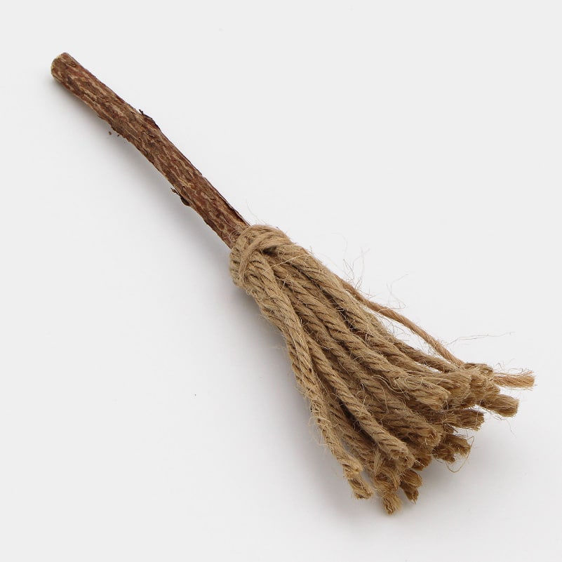 Ce jouet en forme de petit balais est composé d’un bâton de matatabi et de franges en toile de jute.
