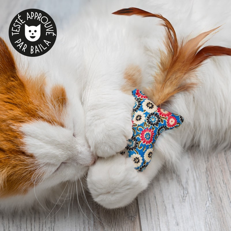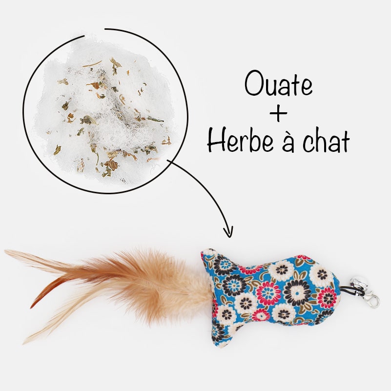 Avec son motif à fleurs, ce petit poisson en tissu bleu ou marron stimulera l’instinct de chasse de votre chat. Le poisson est agrémenté de plumes qui virevolteront lorsque votre chat jouera avec et le lancera dans les airs avec ses pattes. Un grelot se fera également entendre.