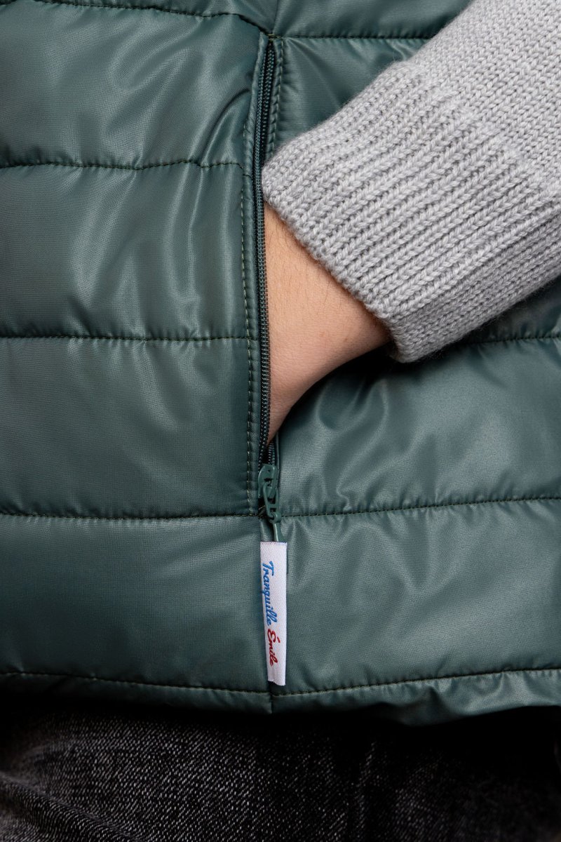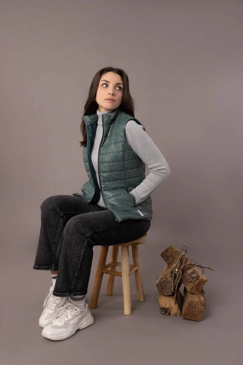 Notre doudoune sans manches vert d’eau totalement made in Rhône-Alpes et labellisée Origine France Garantie est conçue pour vous accompagner en toutes saisons. Cet intemporel est devenu un vêtement incontournable aussi bien d’intérieur que d’extérieur qui vous tiendra au chaud tout en gardant une grande mobilité avec les bras libres de leur mouvement. Grâce à sa doublure chaude et respirante et ses finitions de qualité, elle est très confortable et comme elle est compacte et légère, elle vous suivra partout! La tempérée sera votre atout pour la transition entre les saisons, elle se glissera aussi très bien sous un manteau ou une parka pour un confort et une chaleur absolue, bref, vous ne pourrez plus vous en passer…