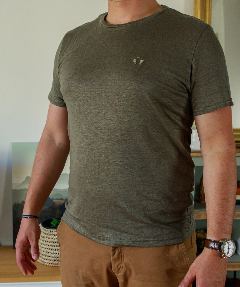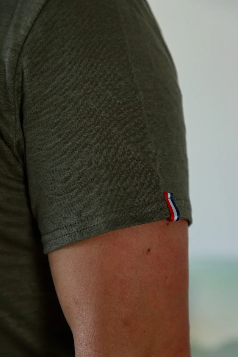L’Indispensable, le t-shirt homme en lin made in France à découvrir avec un nouveau coloris vert sauge. Un jersey 100% lin de 190 g/m² pour vous garantir un t-shirt qui vous durera des années et sera votre meilleur allié quand les températures s’élèvent. grâce à sa légèreté.