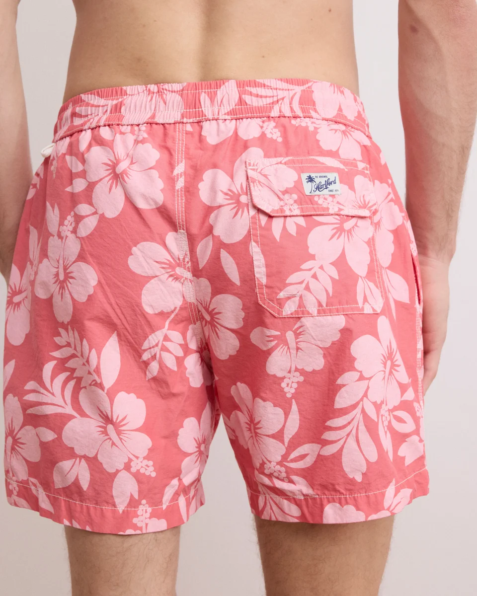 Maillot de bain homme emblématique Hartford, le SWIM est un short de bain mi-longueur avec deux poches sur les côtés et une poche arrière. Sa taille élastique s’ajuste avec les cordons.