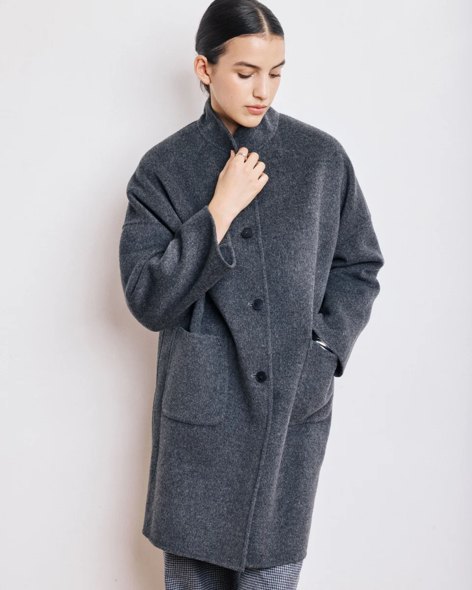 Manteau Femme en Laine Double Face Anthracite Vadim