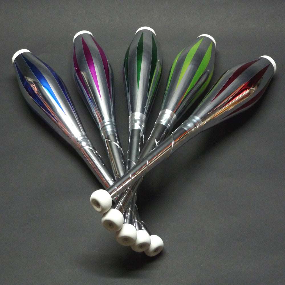 les massues Henry’s avec déco Circus,pour tous les types de déco, 1/2, 1/8, uni, glitter ou métal, sont à réserver pour la scène.